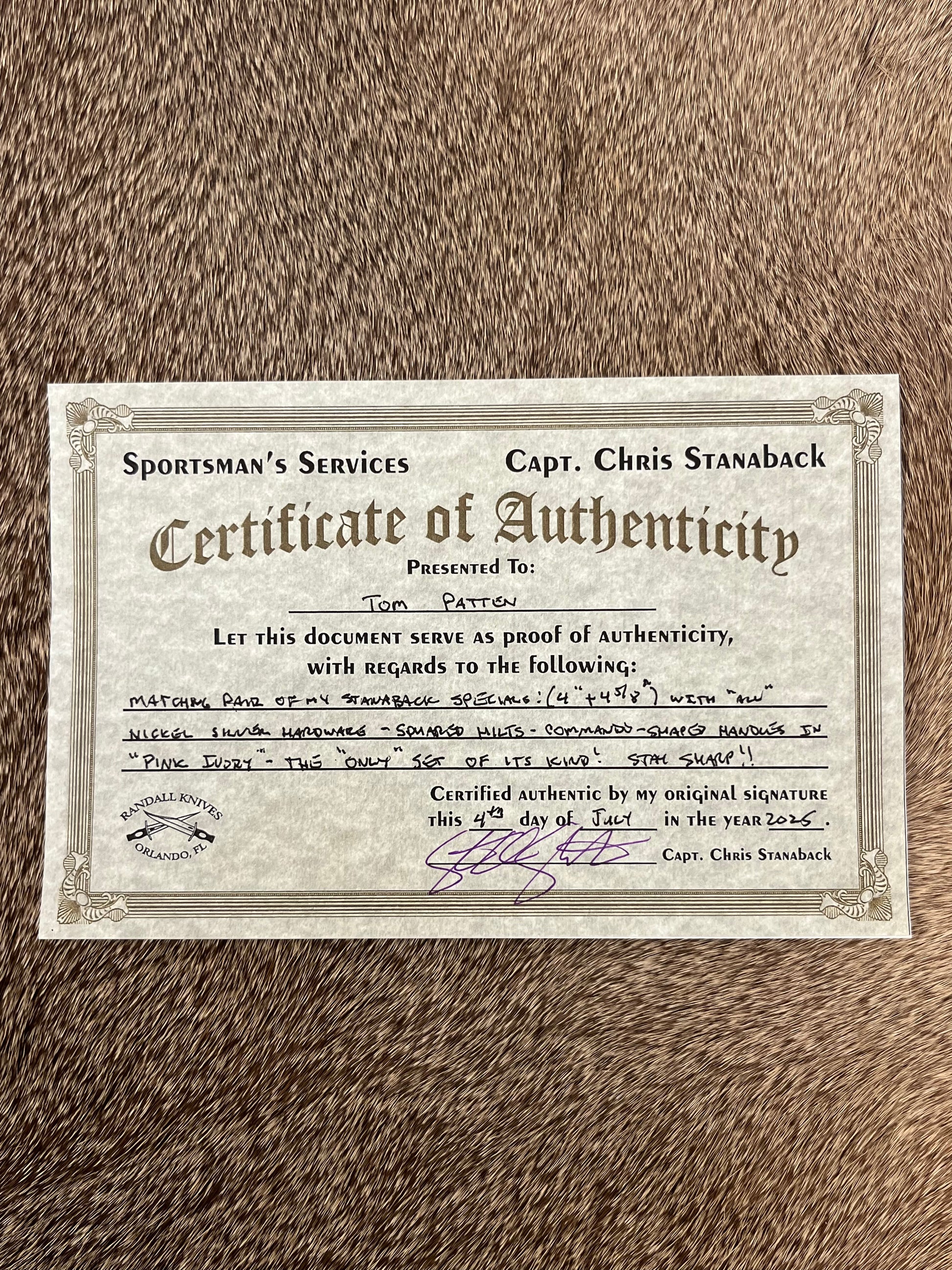 Pair of Stanaback Specials RKCC Limited 1 of 40th, these are Commemorating Captain Chris Stanaback as a Randall Dealer for 40 years.