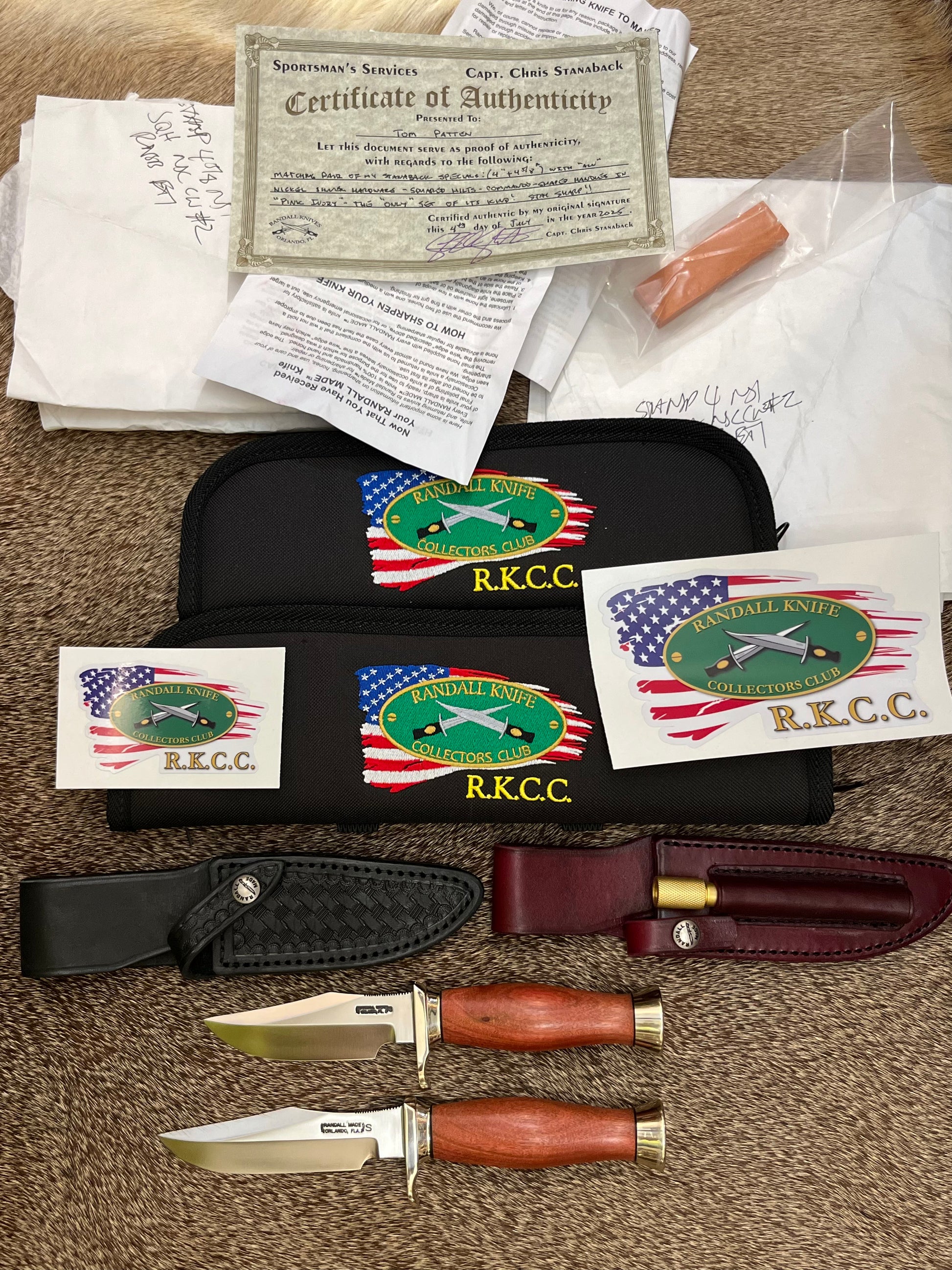 Knives come with a Certificate of Authenticity from Captain Chris Stanaback, original packing paper, Custom RKCC Collectors Club pouch’s, and a 3 1/2” plus a 6” RKCC Decal