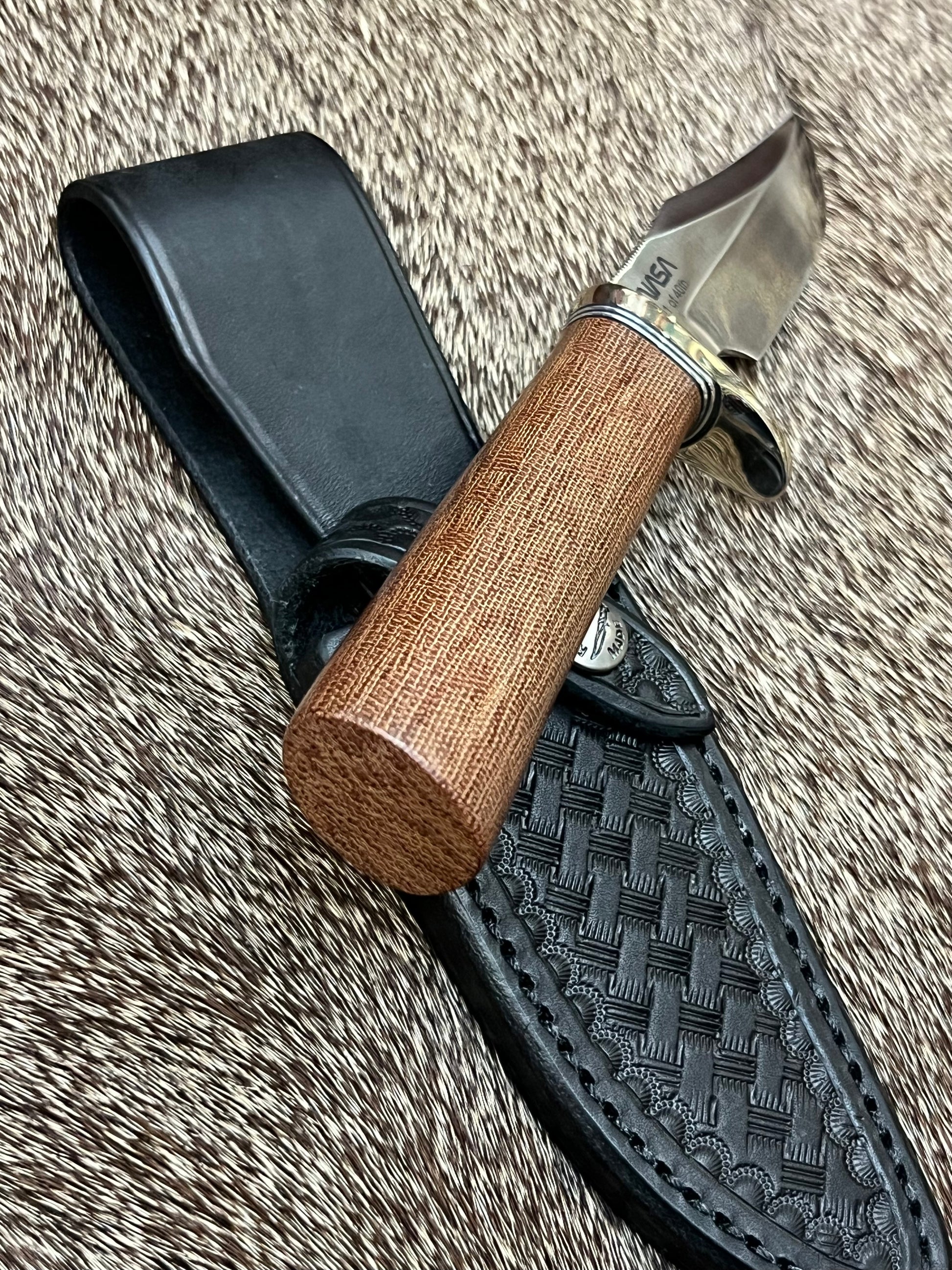 OxBlood Custom Leather Sheath from Sullivan’s Leather Shop with a Brass E-Z Lap Sharpener