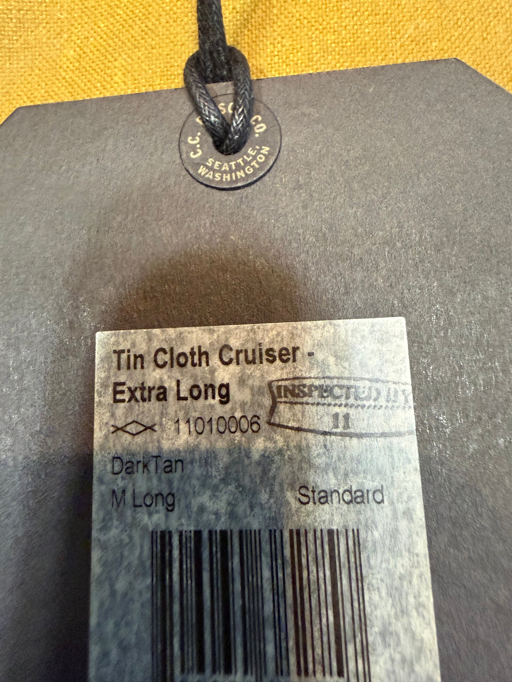Filson Dark Tan Waxed Oiled Tin Cloth Cruiser Canvas Medium Long Made in USA 🇺🇸 New with Tags, made June 2020