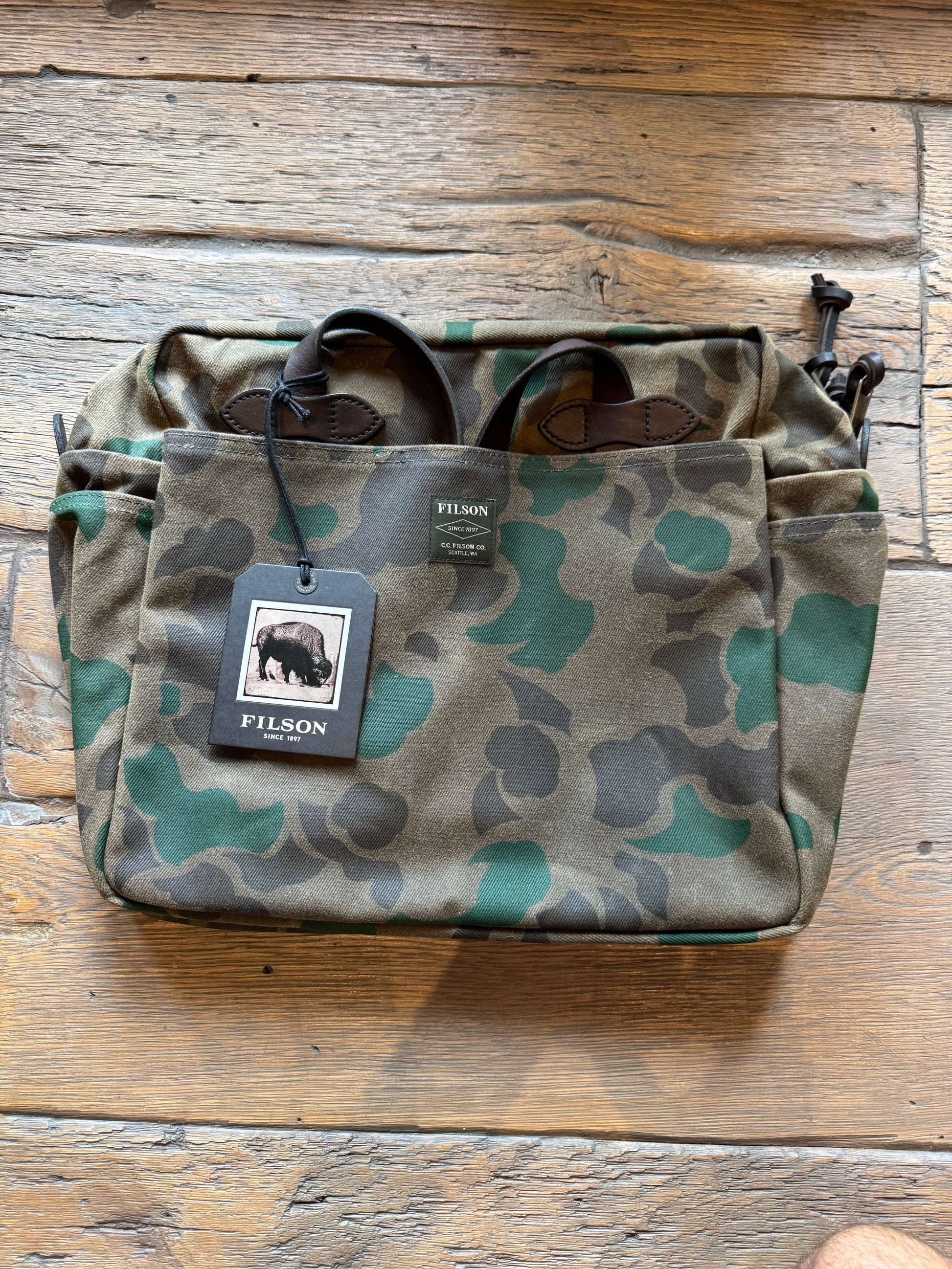 Filson Limited Edition NWT Wax Shrub Camo Rugged Twill Zippered Tote with clip # 20226931