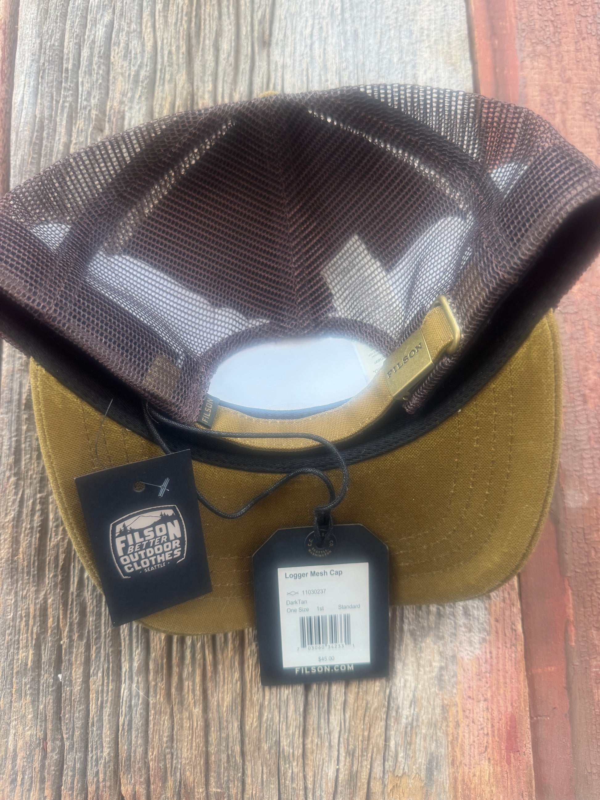 Filson Logger Mesh Cap Oil Finish Tin Dark Tan Hat New with Tags # 11070237