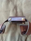 • Signature Bridle Leather handle with two-snap grip folds bag in half for easy carry