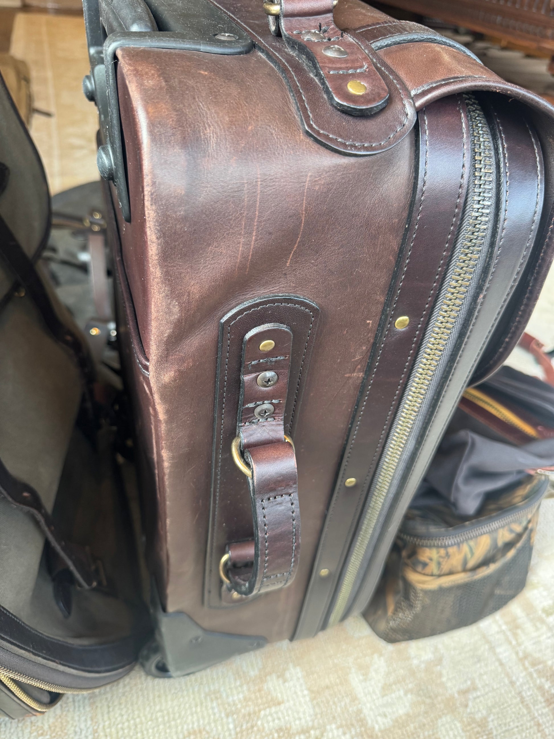 Filson discontinued Weatherproof Rolling Carry-On Leather Bag in size medium. Color is Sierra Brown. Part of the Leather Grail 4… Duffle, Rolling Carry-On, Briefcase and Journeyman backpack.