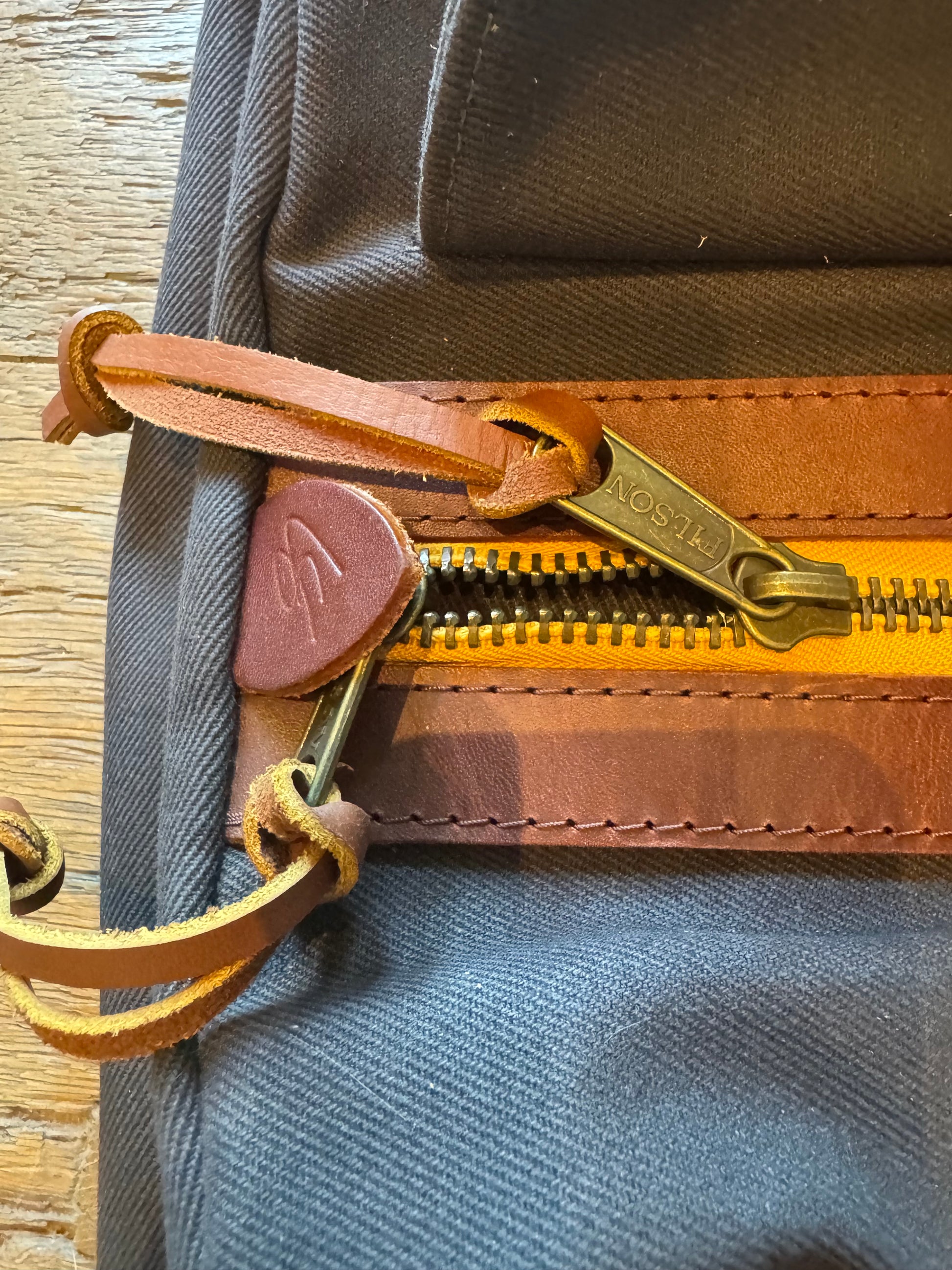 This limited-edition Medium Duffle features colors for the fabric, zippers, and leather that complement Chris’s favorite guitars. The handles and shoulder strap are upgraded with heavy-duty harness leather that’s vegetable-tanned in Pennsylvania by the legendary Wickett & Craig. This special leather has tallow and waxes infused into it during the time-intensive tanning process, yielding a superior, supple leather that only gets better with age.