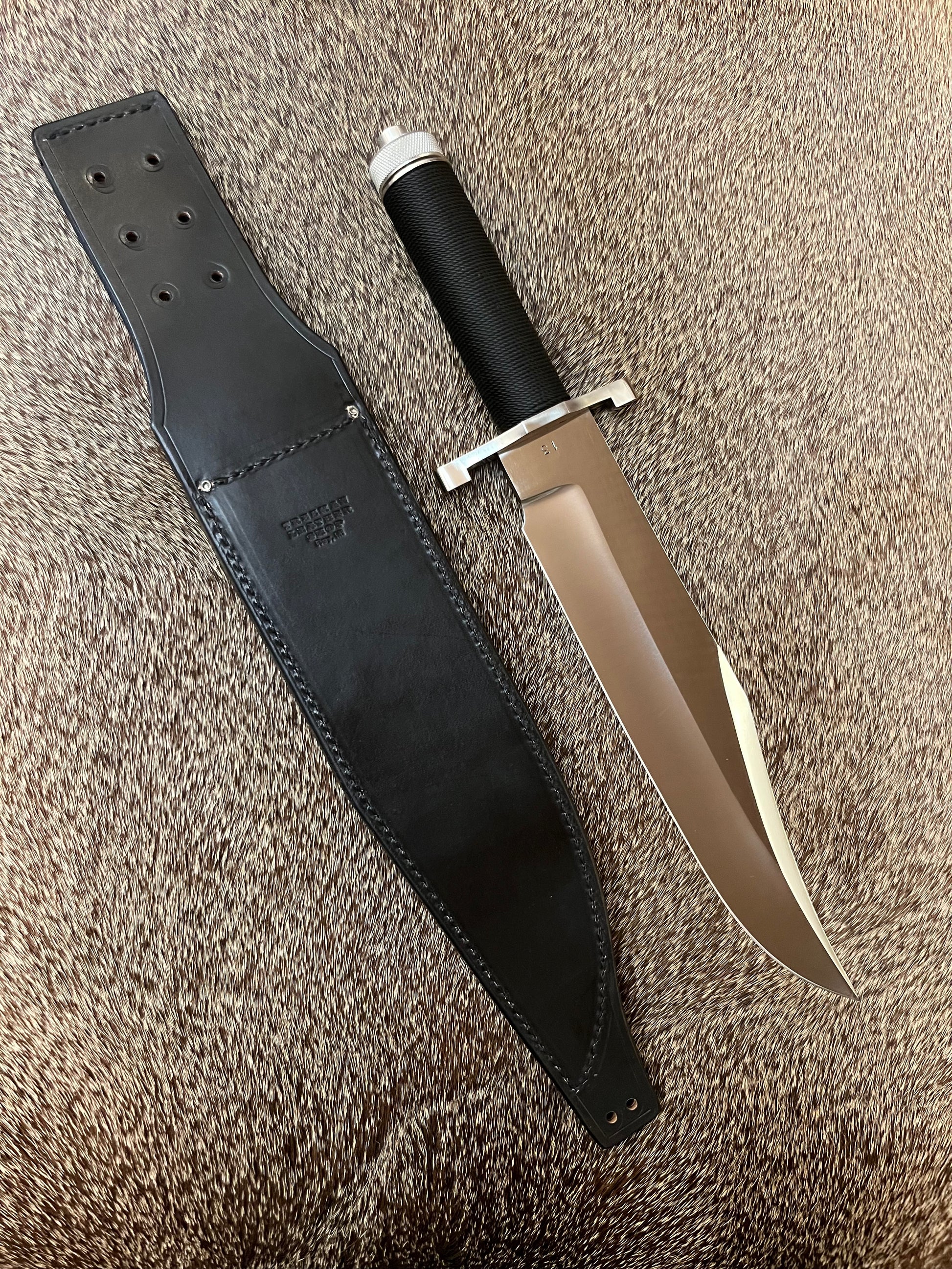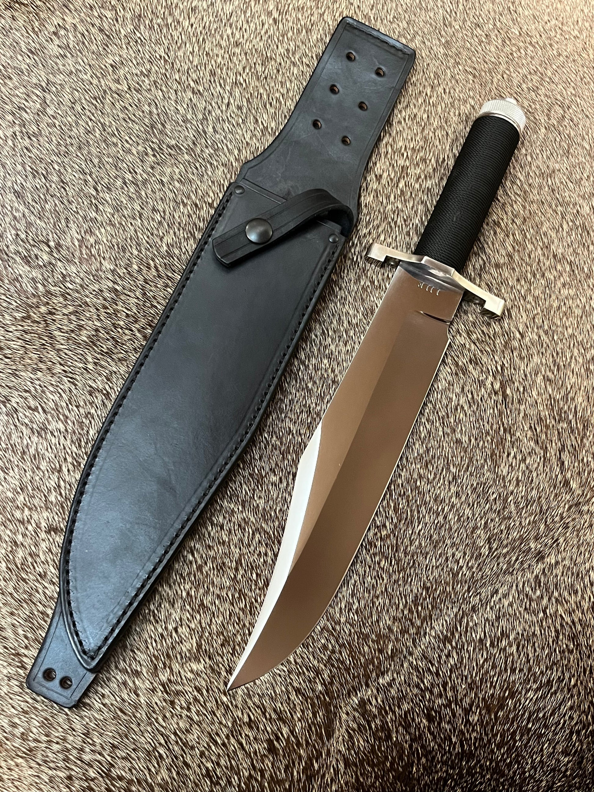 The knife didn’t have a sheath when I acquired it, so I had Treeman Leather Shop Custom Build one Similar to what a Rambo Knife would have