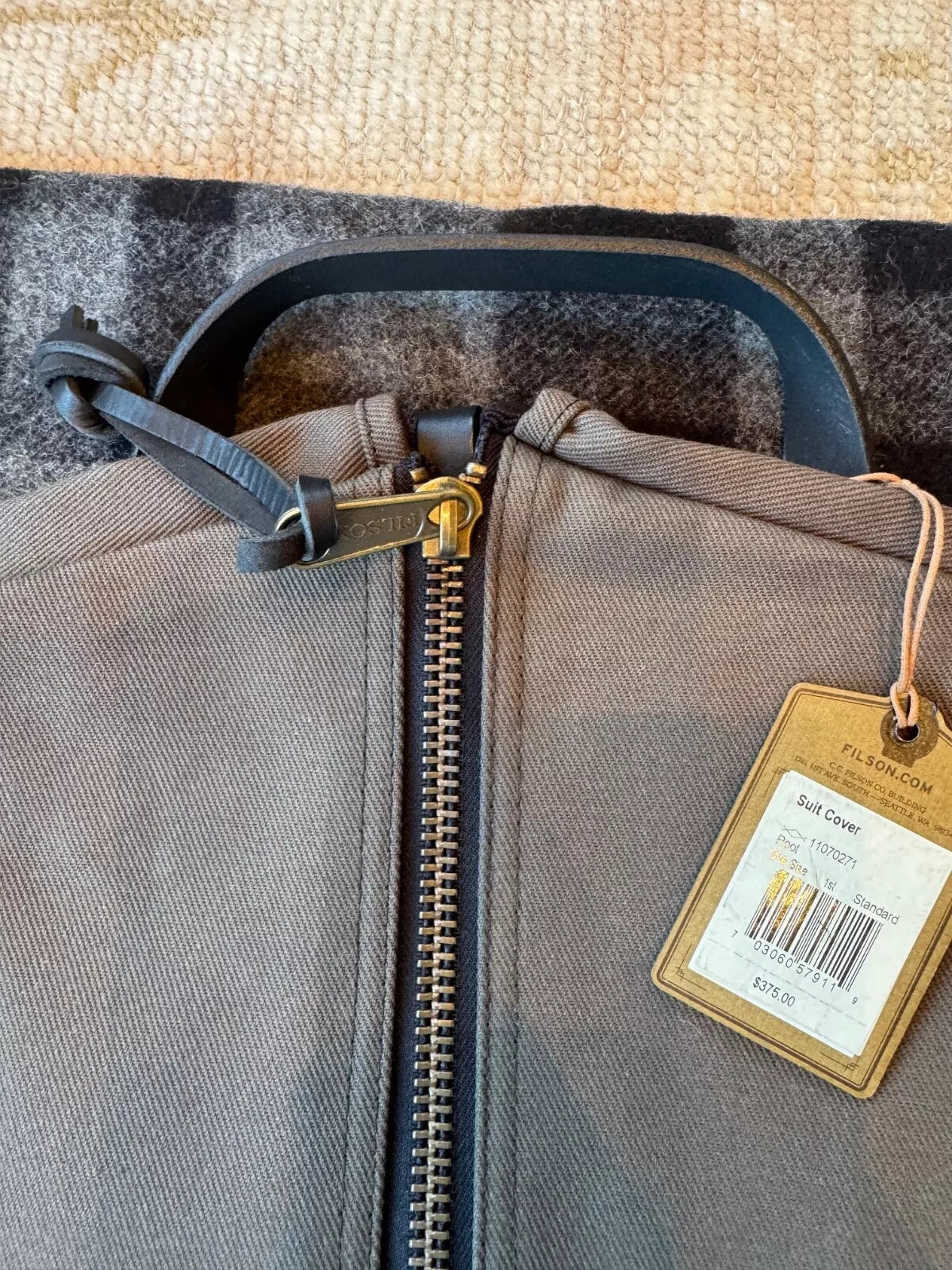 Discontinued Filson Rugged twill suit cover in the very rare color of Root.