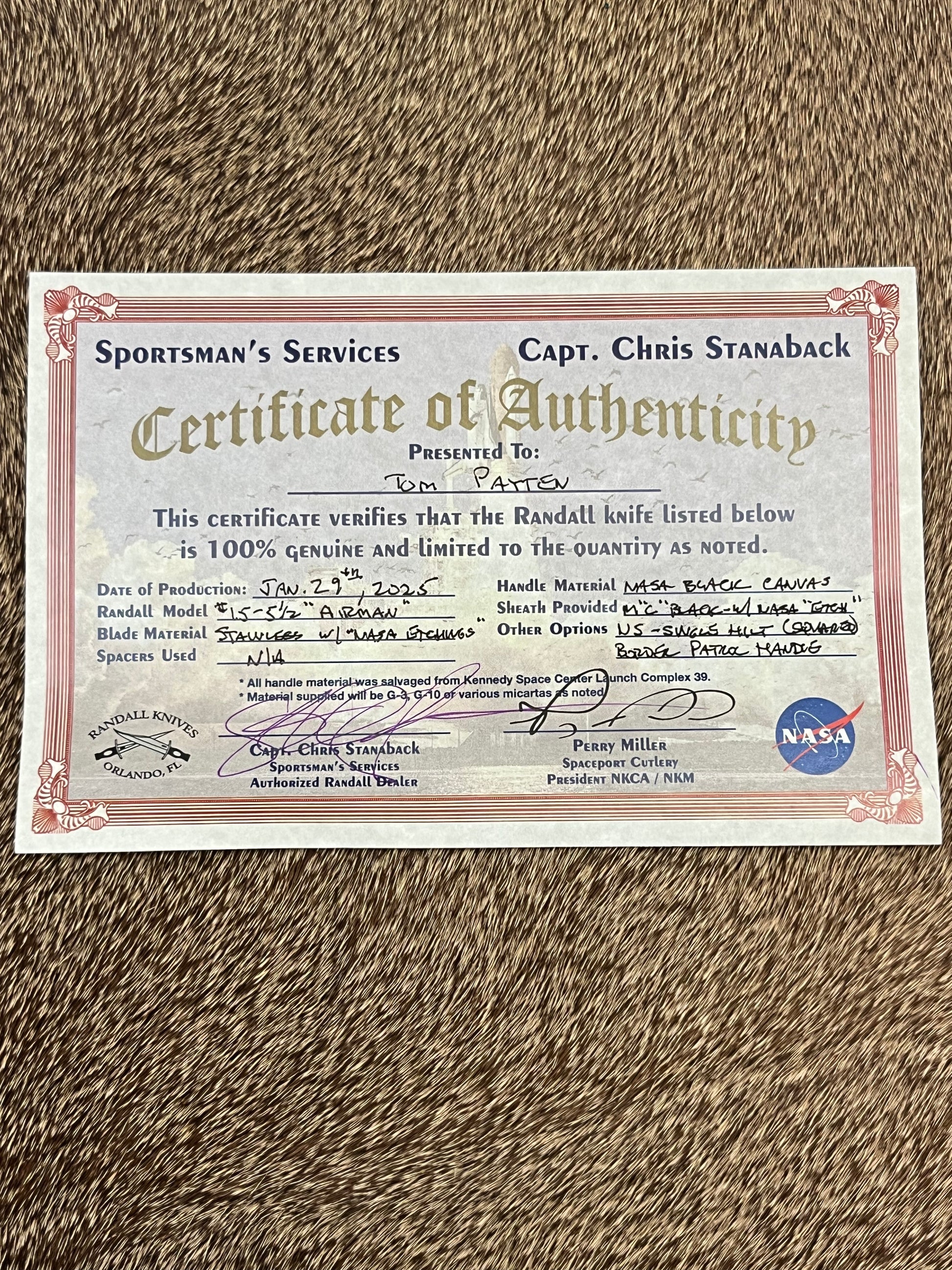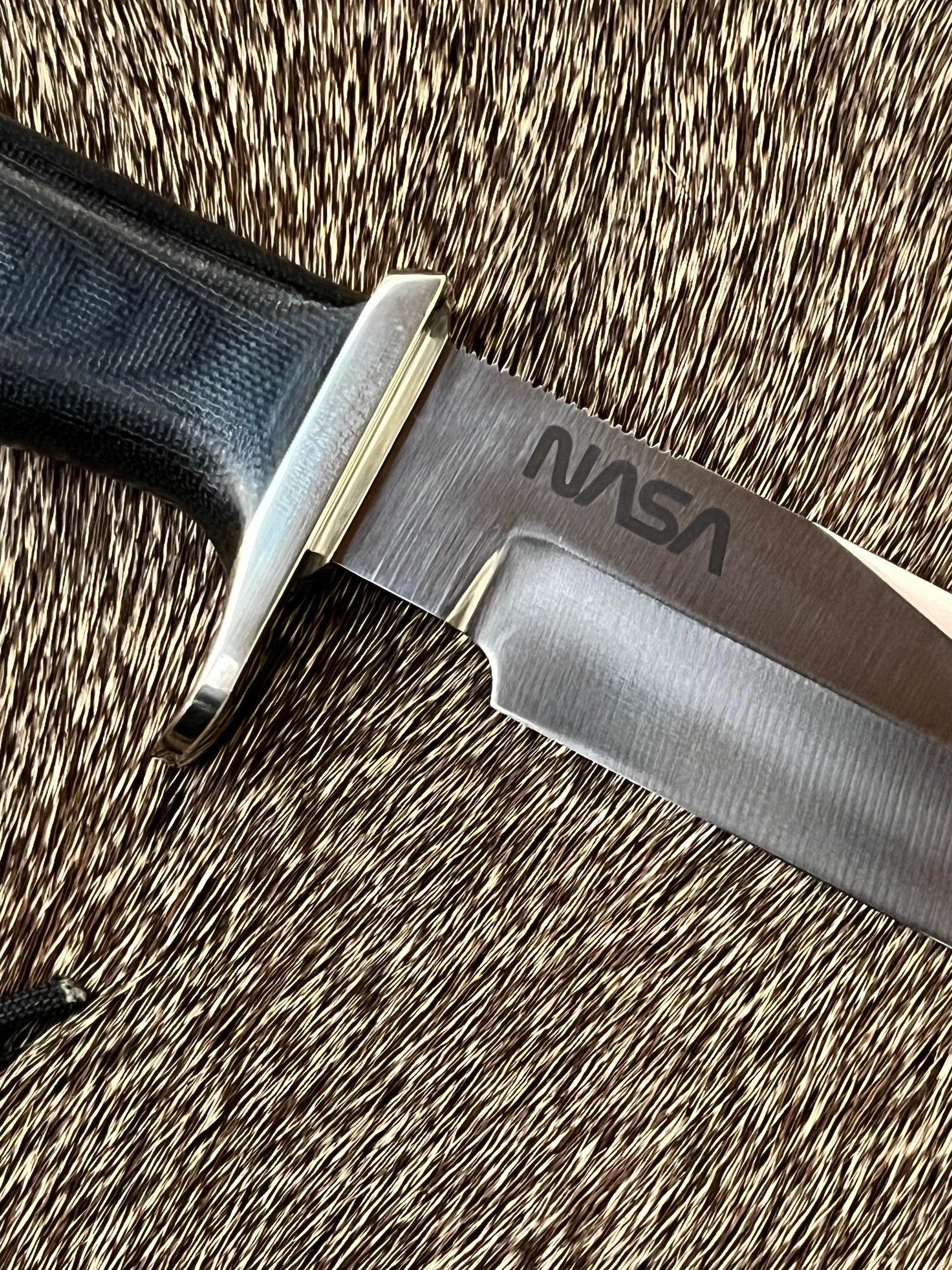 Handle is a Border Patrol with Black Canvas Micarta Salvaged from Kennedy Space Center Launch Complex 39