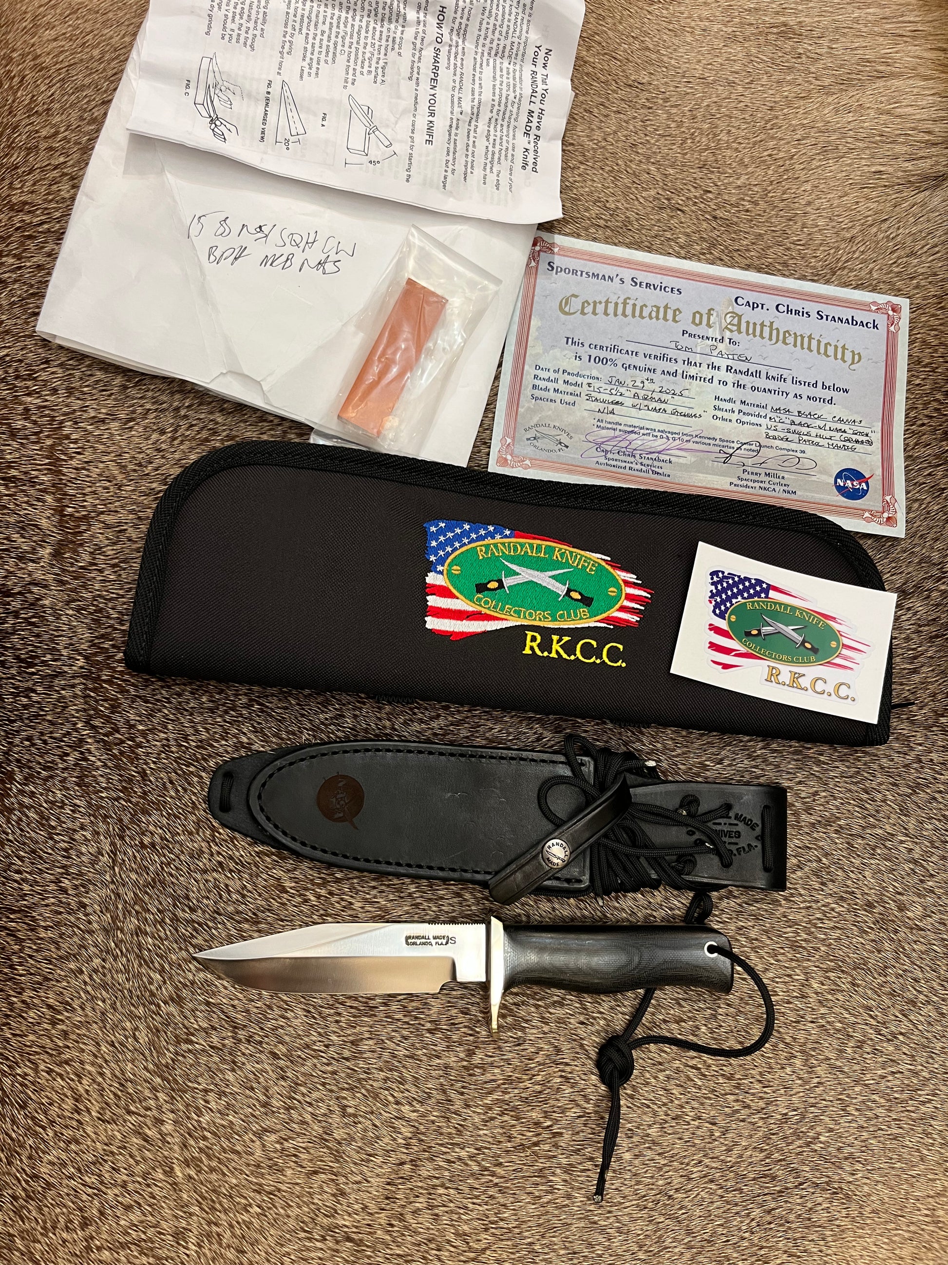 Knife comes with Original Packing Paper, Custom Randall Knife Collectors Club Zipper Pouch, and a RKCC Sticker