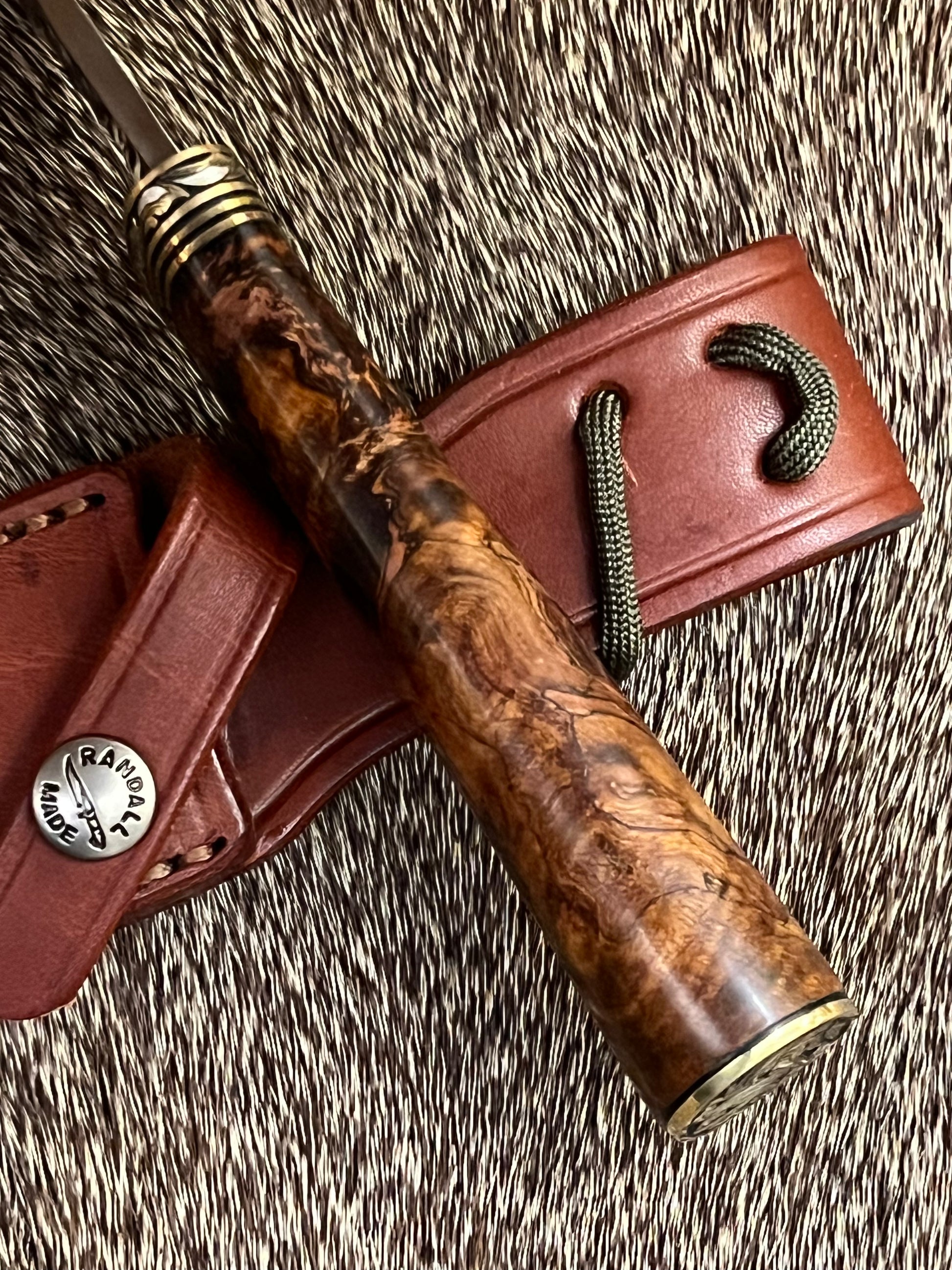 Sheath is an earlier brown stitch no hone made by Sullivan’s Custom Leather Shop