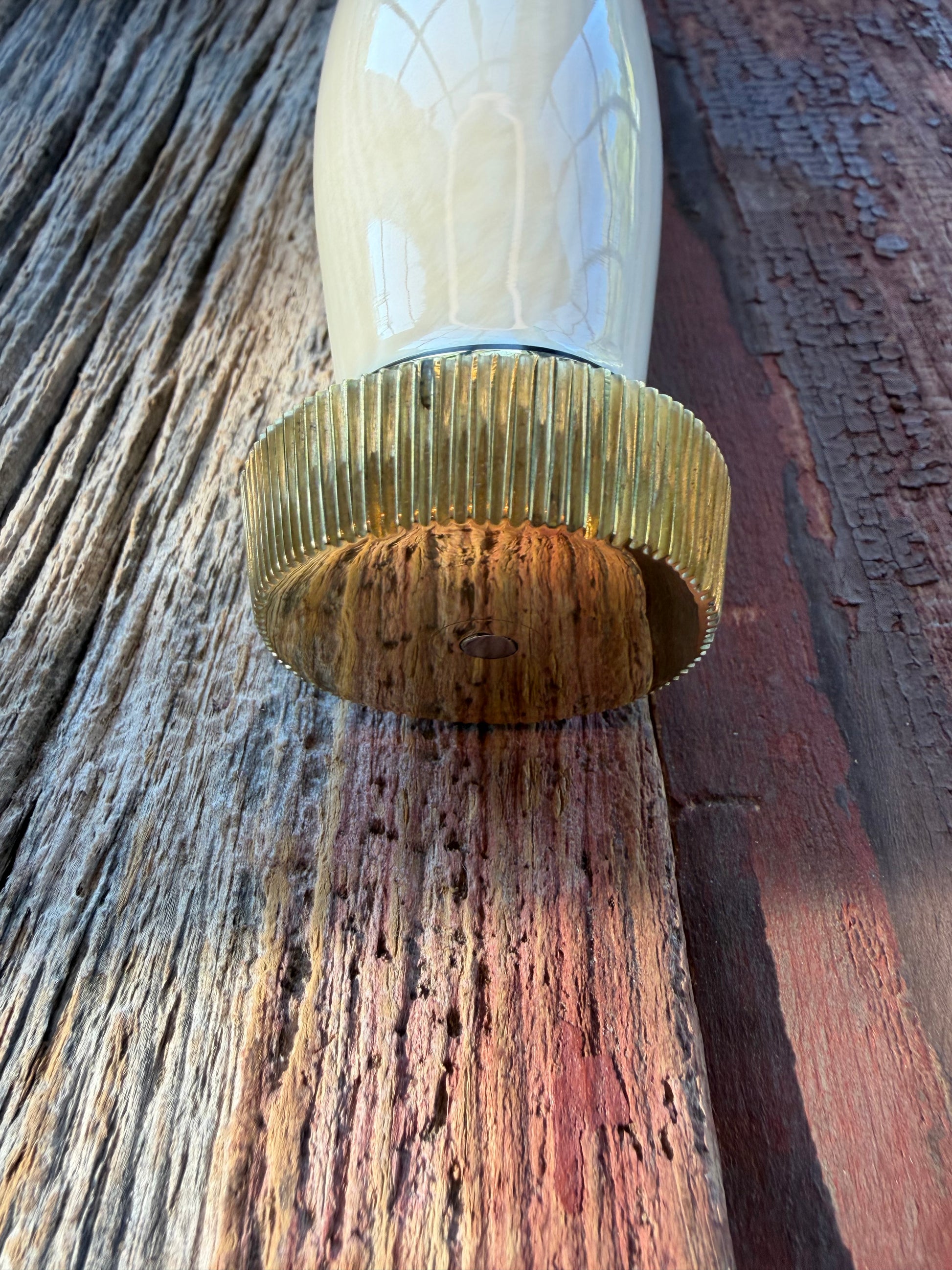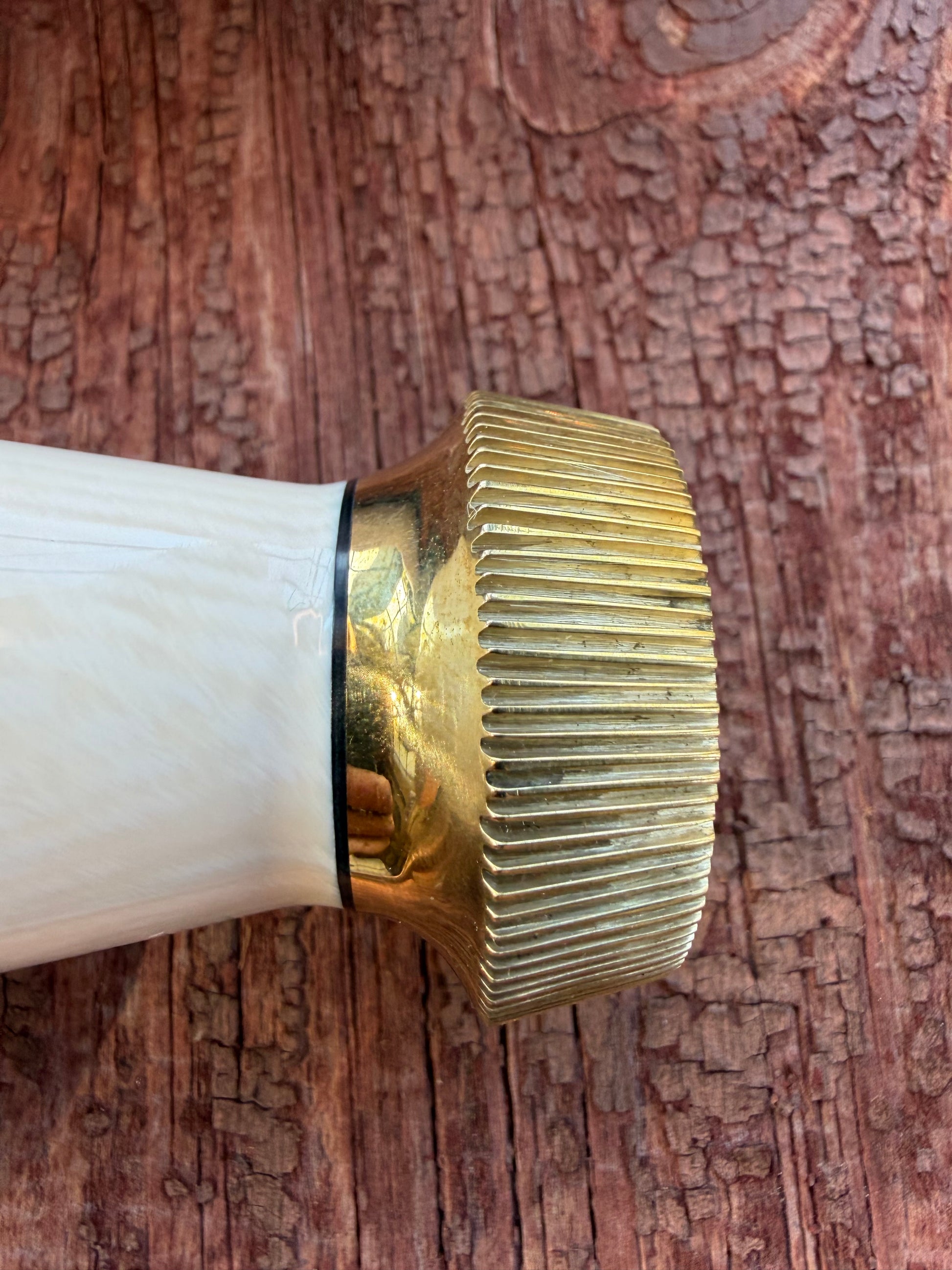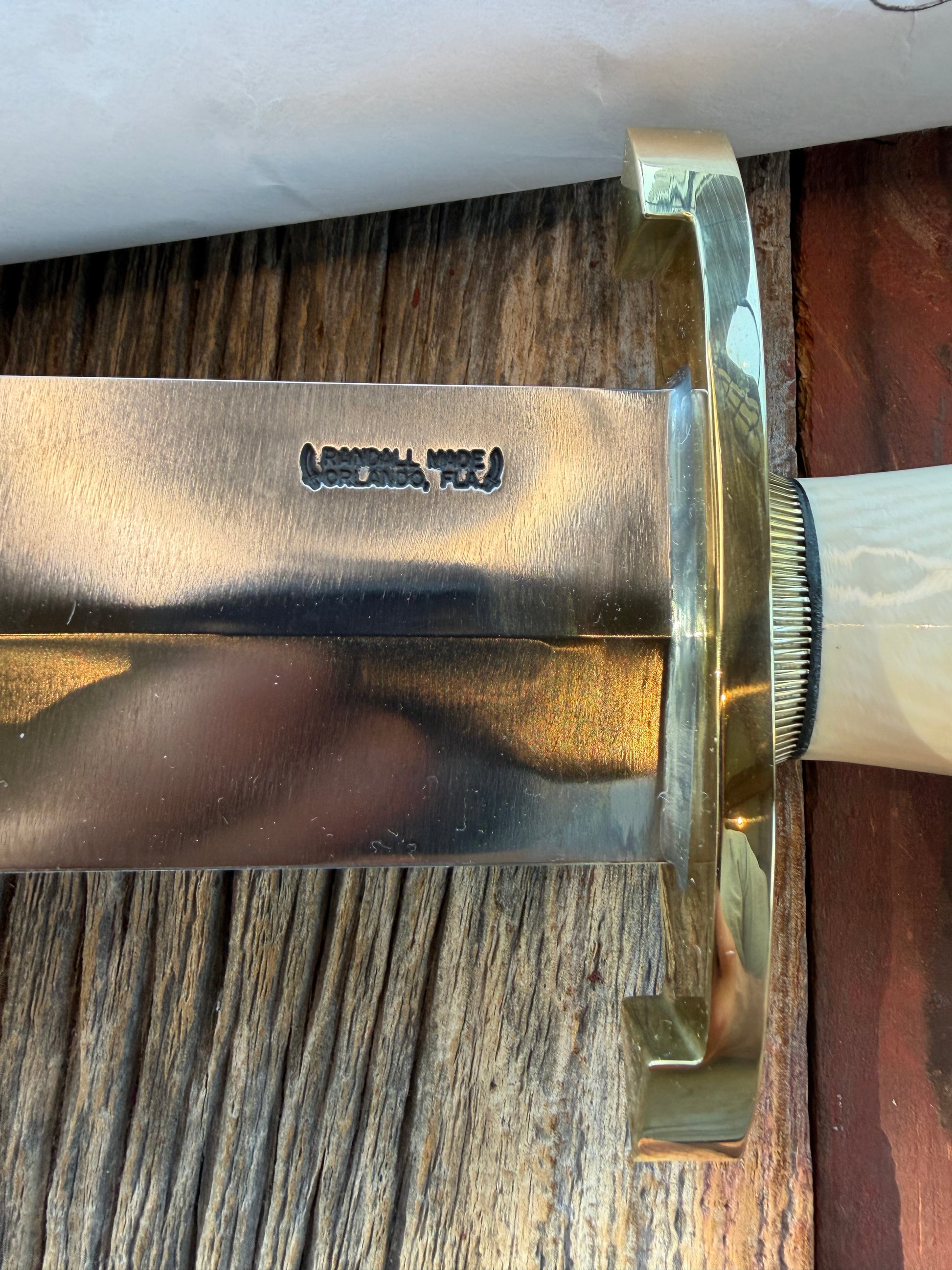 New in Paper Model 12-11 Smithsonian “ Smitty” Beautiful Dave Warthers Resin with a Brass Lugged hilt and Scalloped brass collar and scalloped coolie butt cap.