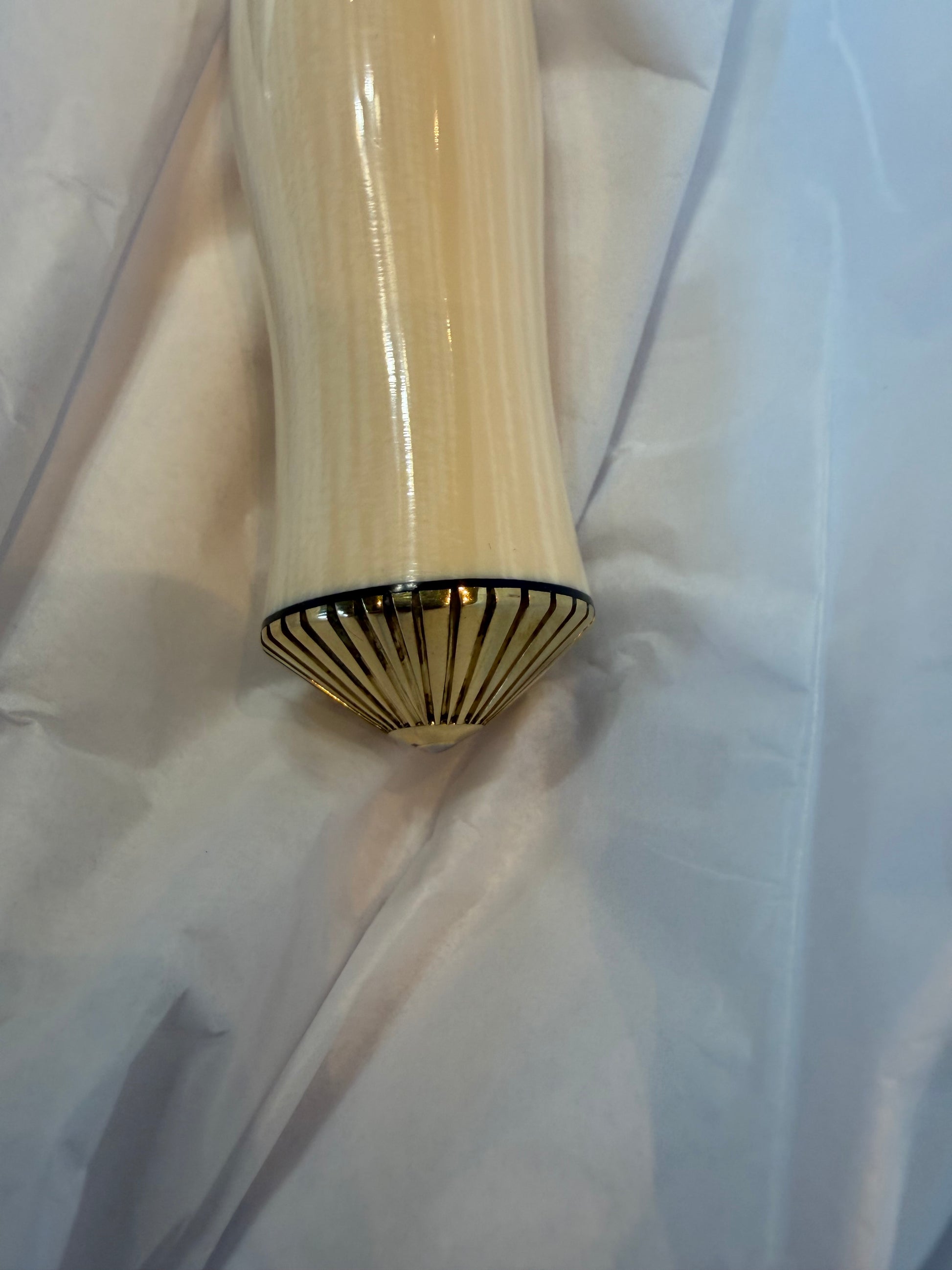 • Brass scalloped collar and cookie butt cap