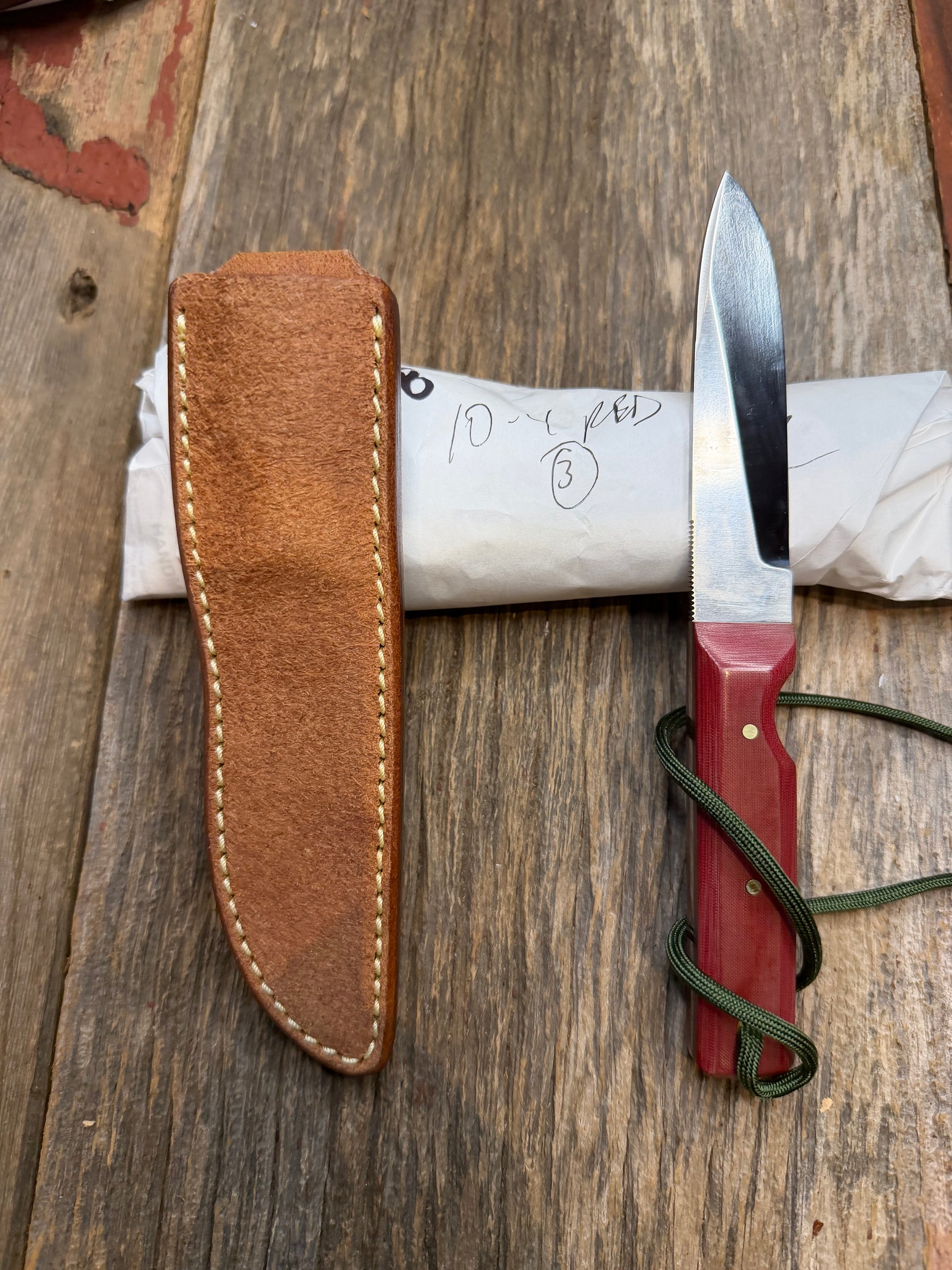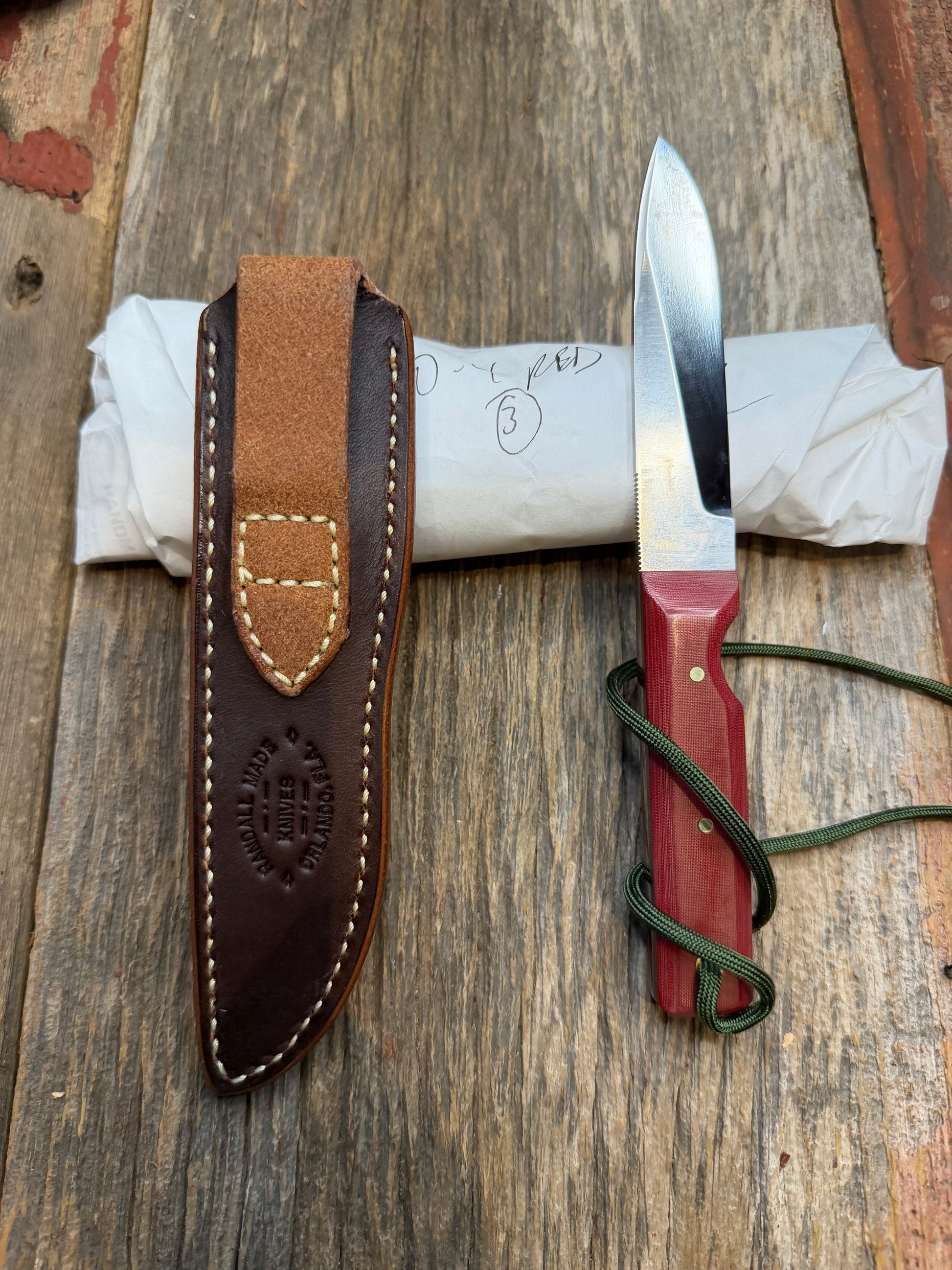New in Paper Randall Knife Model 10-4 Fisherman Red Micarta Handle Stainless Steel