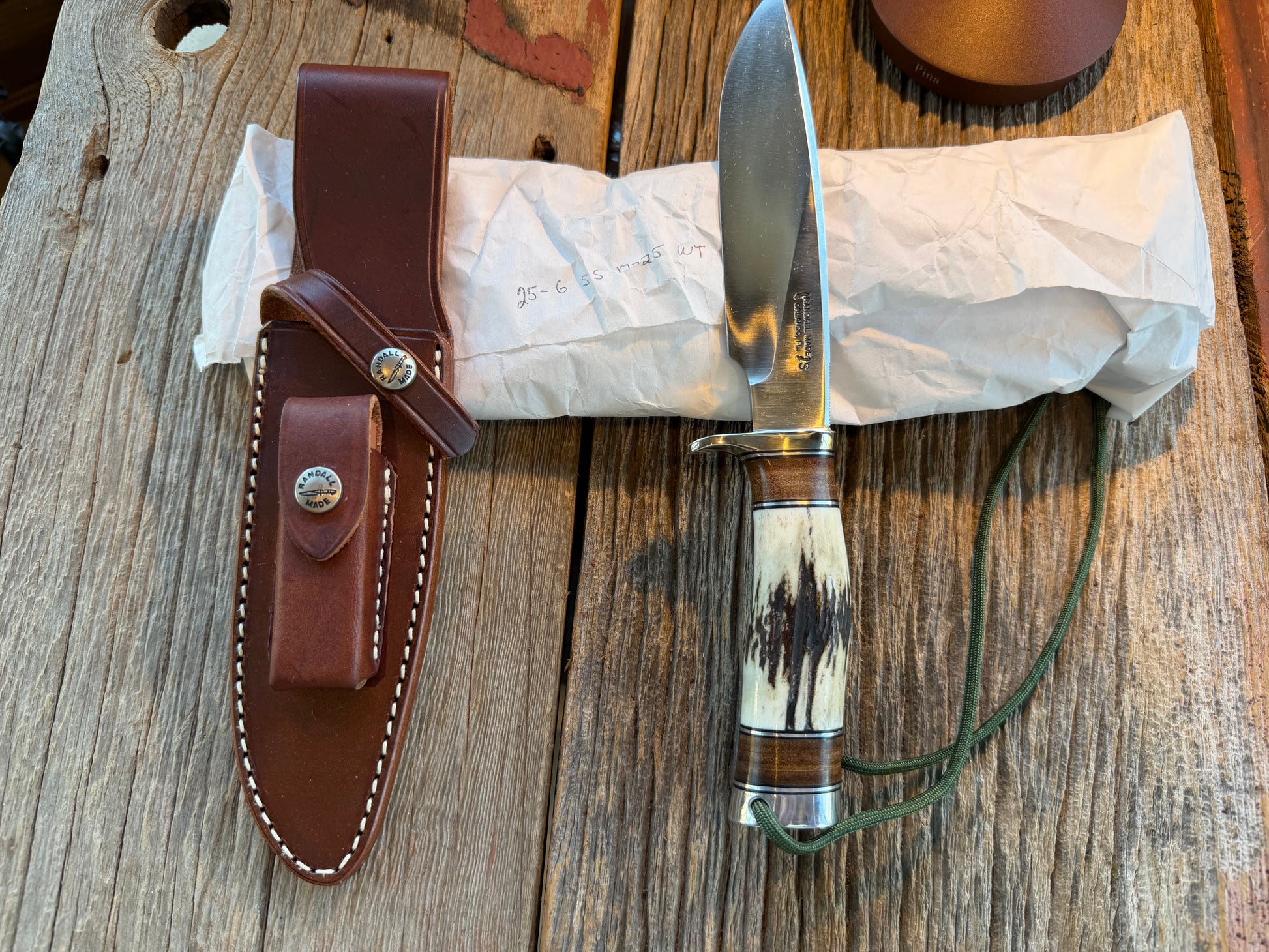 New in paper Randall Model 25-6 with a brown Randall Leather sheath. There is currently a 5-6 year wait on Randall’s. This is a stunning knife !!