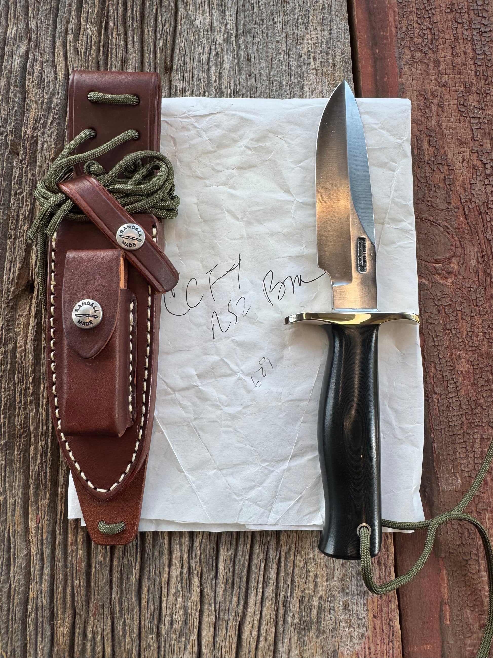 New in Paper Randall Knife Model Combat Companion Black Micarta Handle Stainless Steel, NSH , Lanyard, Nickel Silver Double Hilt.