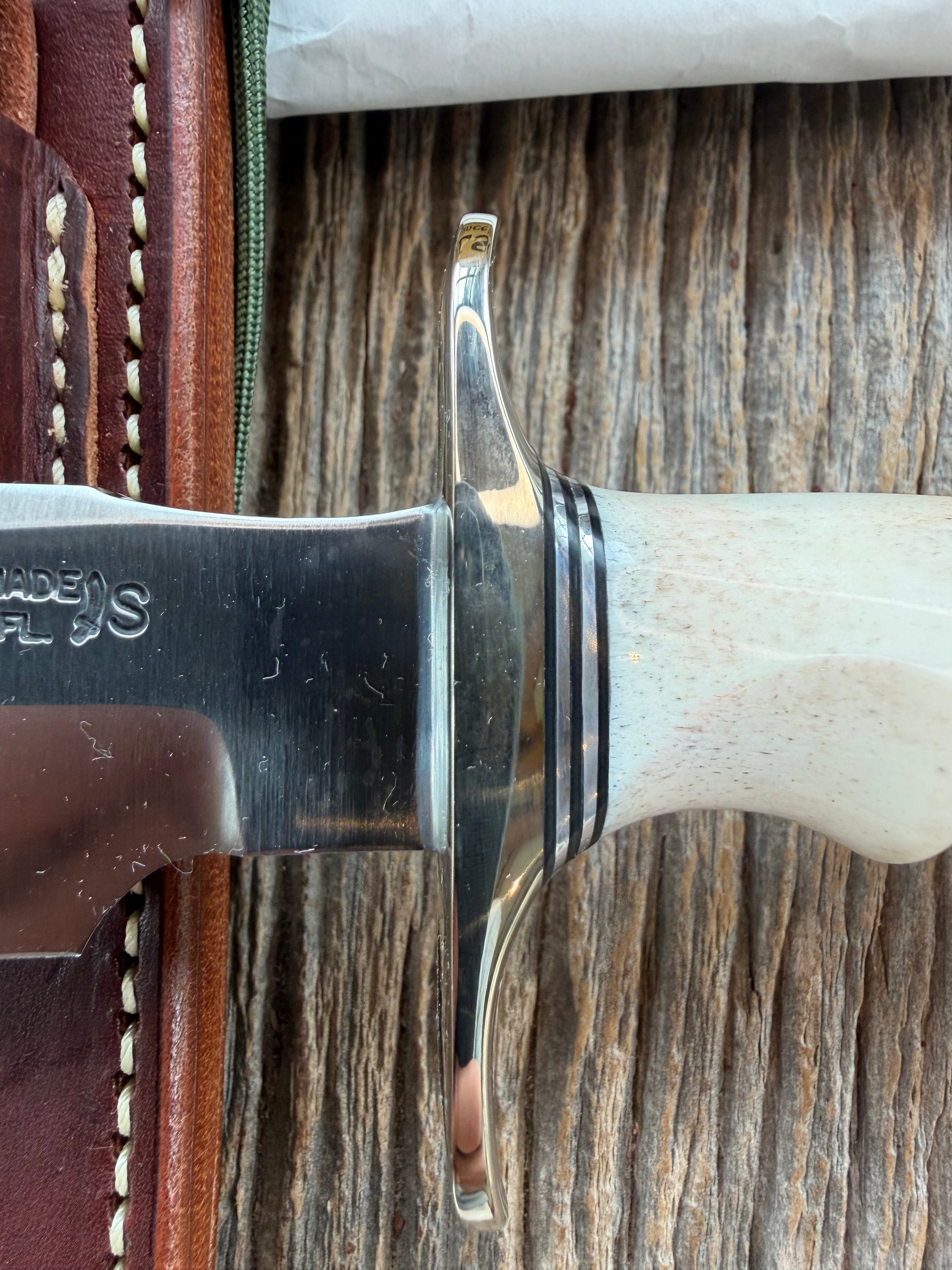 New in Paper Randall Made Knife Model 1-8 Stag Finger Grooves Stainless Nickel Hilt
