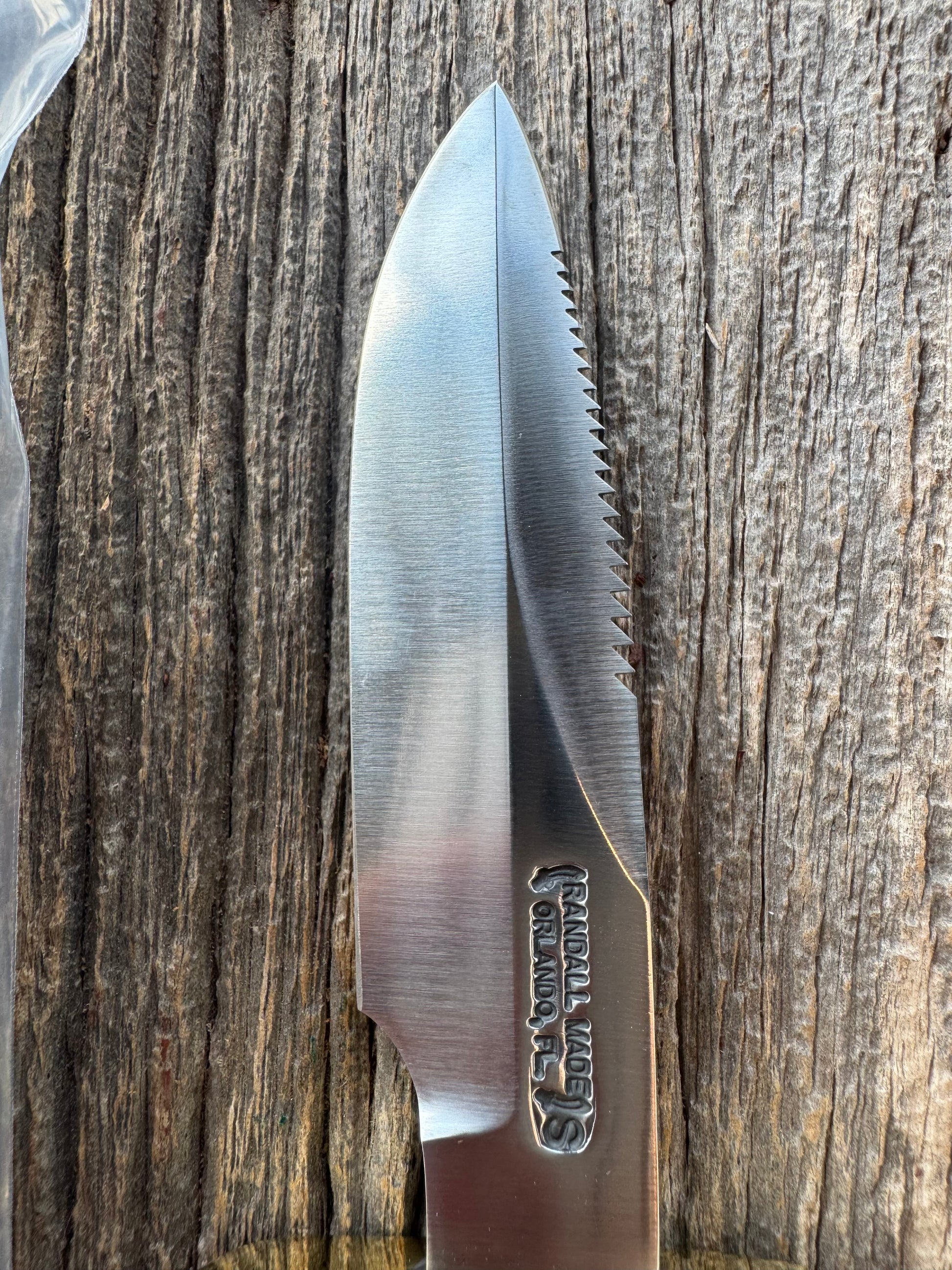 New in paper Randall Model Combat Companion with a nice piece of customer supplied Warthers Resin with finger grooves. Teeth, Stainless Steel, Brass Hilt and brass butt cap.