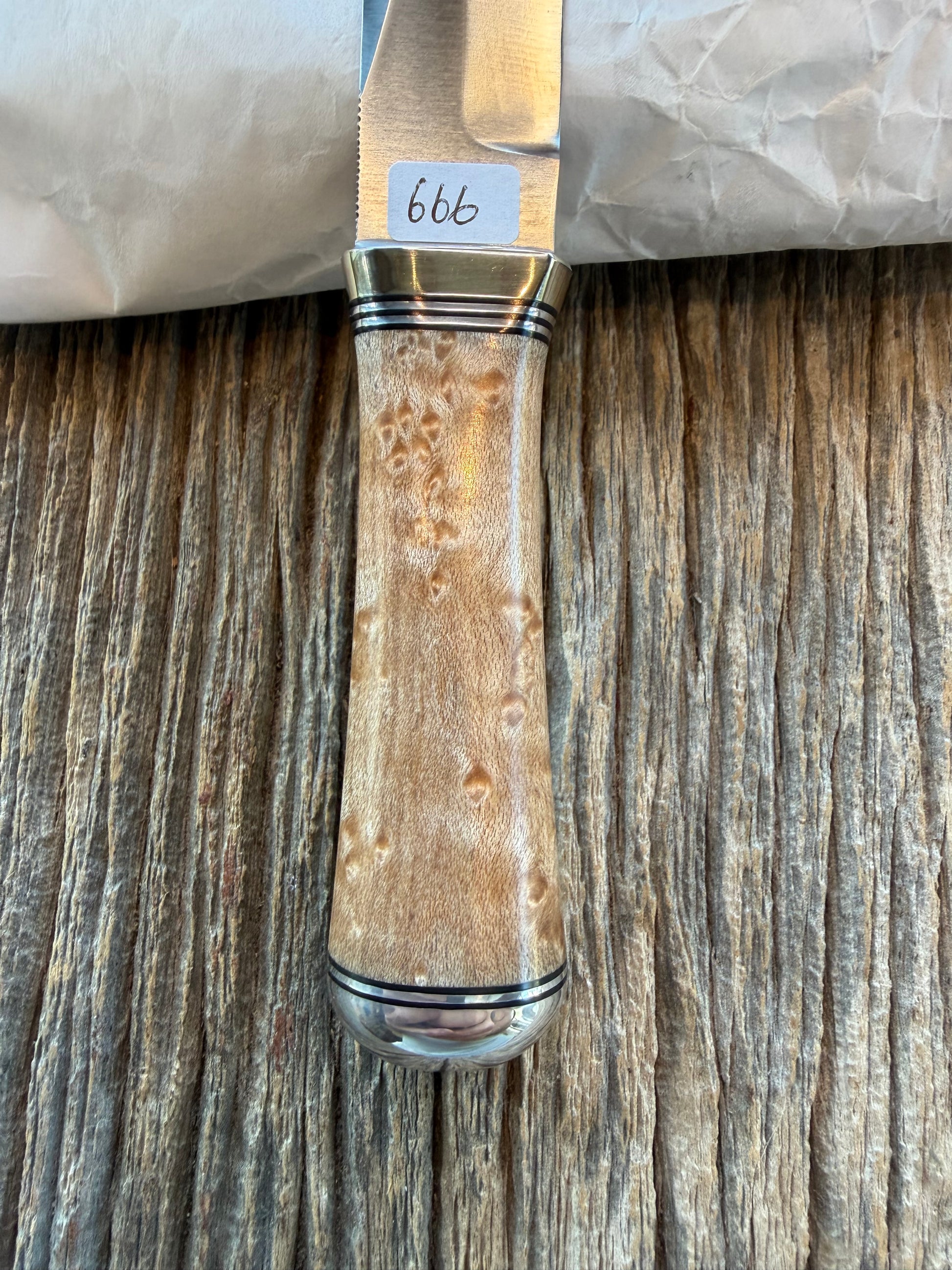 New in Paper Randall Model “Gambler” 4 Inch in Maple Wood, Nickel hilt, Stainless, black and aluminum spacers.