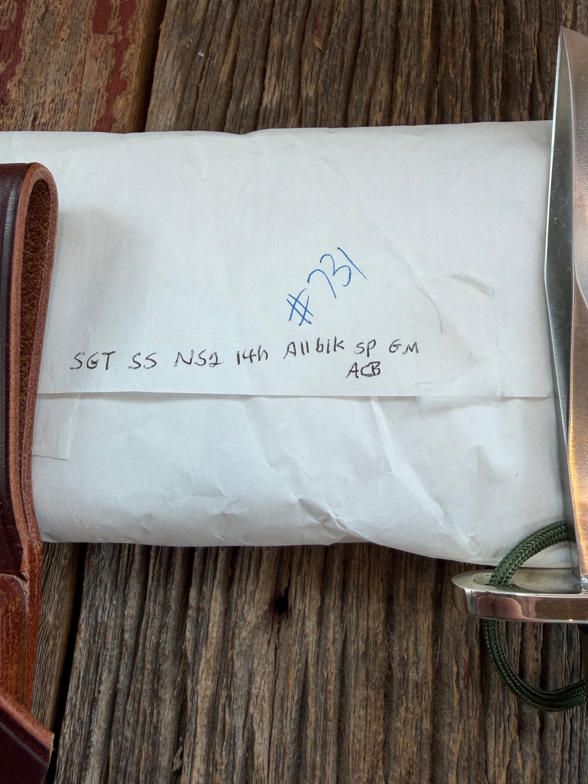 This is a Randall Made Knife from Orlando, FL. It is a non catalog Model Sergeant Knife. Randall is experiencing a 6-7 year wait on orders and dealers are looking at 14-18 months.