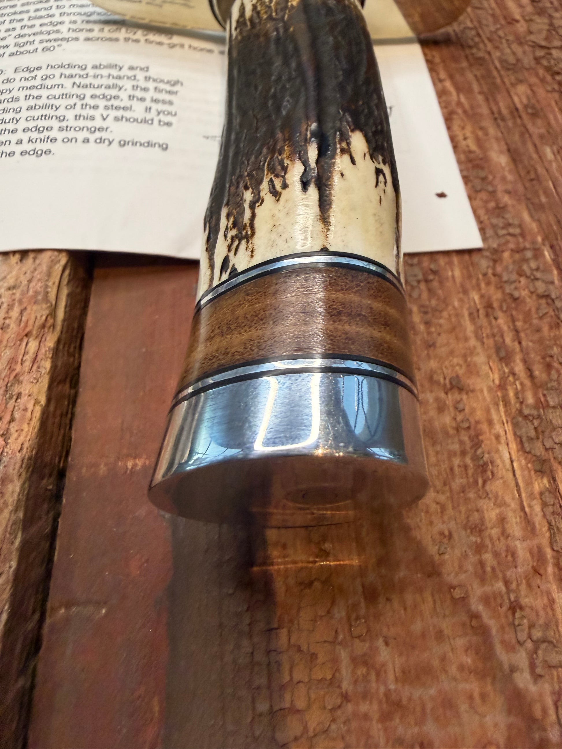 • Factory stag and leather handle