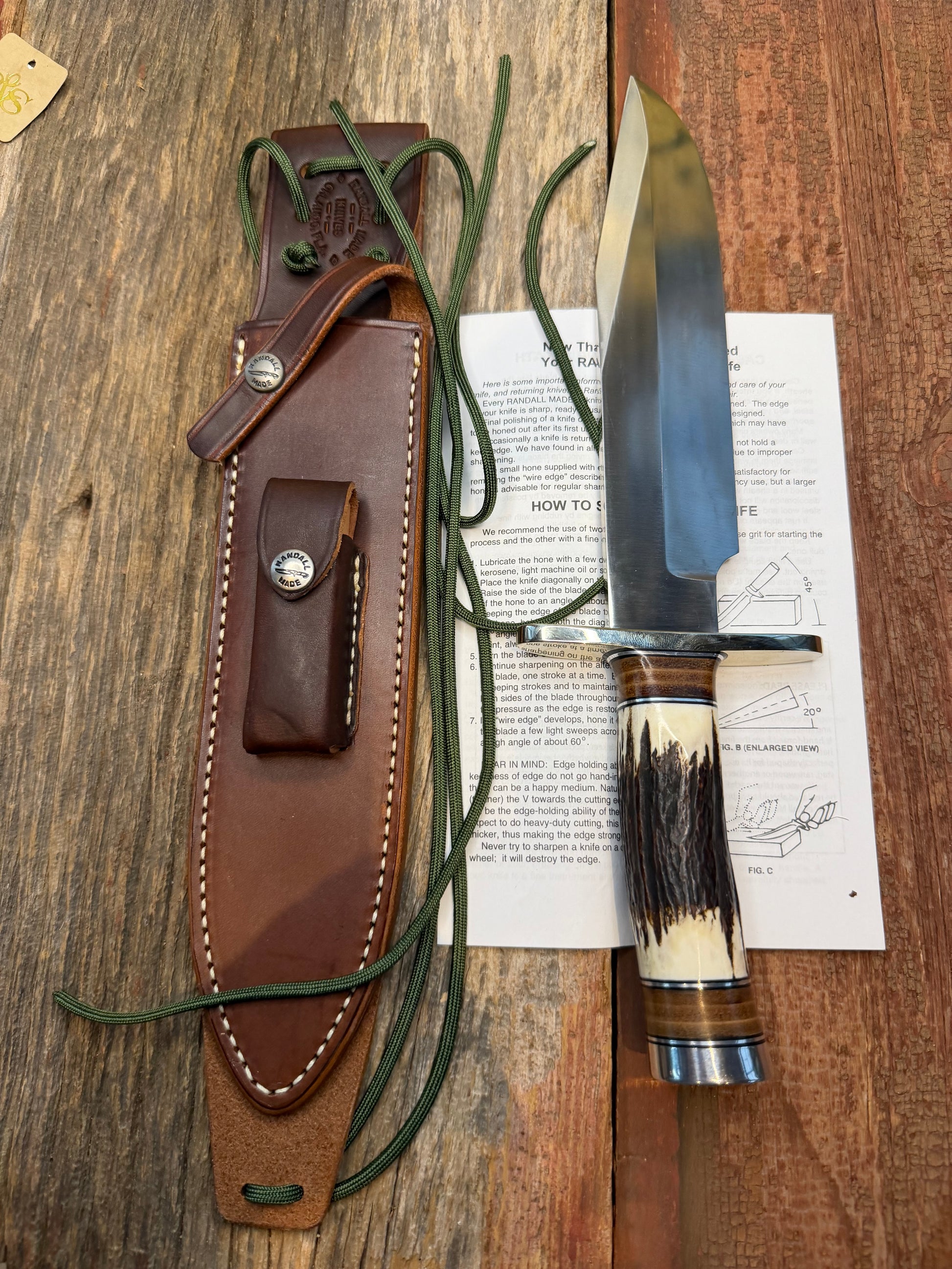 New Randall Knife Model 12-9/14 grind, Stainless Steel, stag and leather