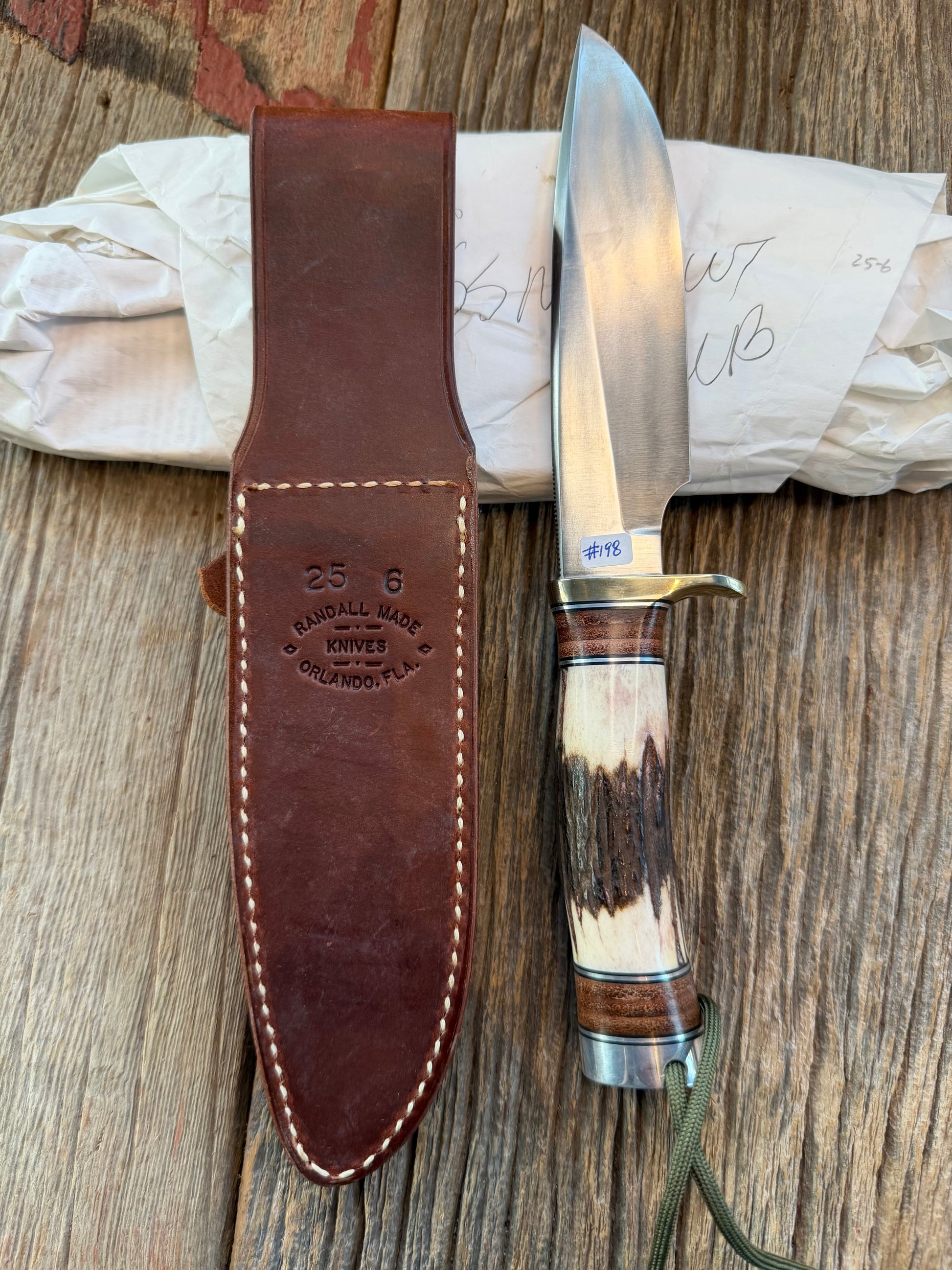 New in paper Randall Knife Model 25-6 Trapper in Stag Leather Handle Stainless Blade, NSH