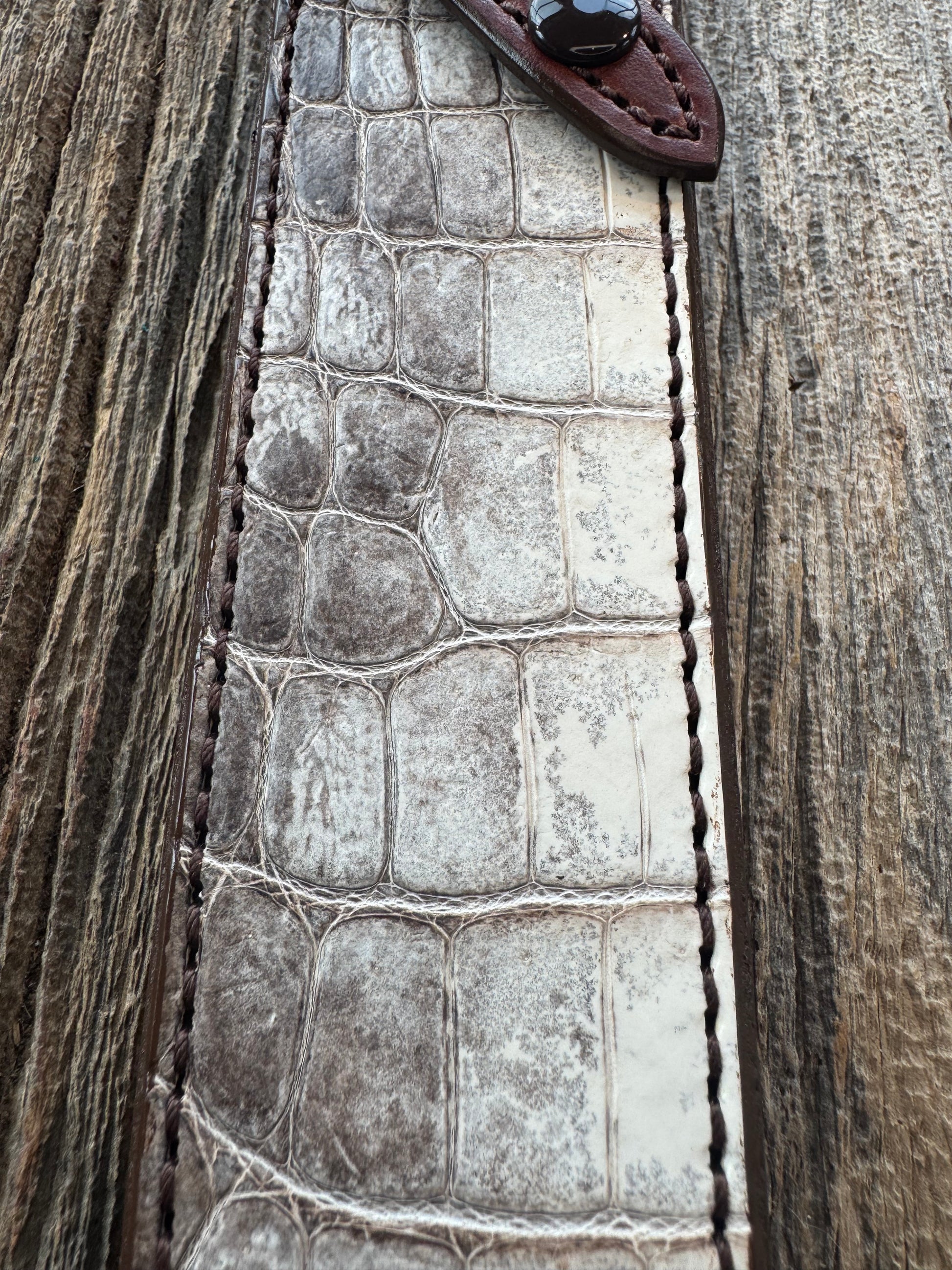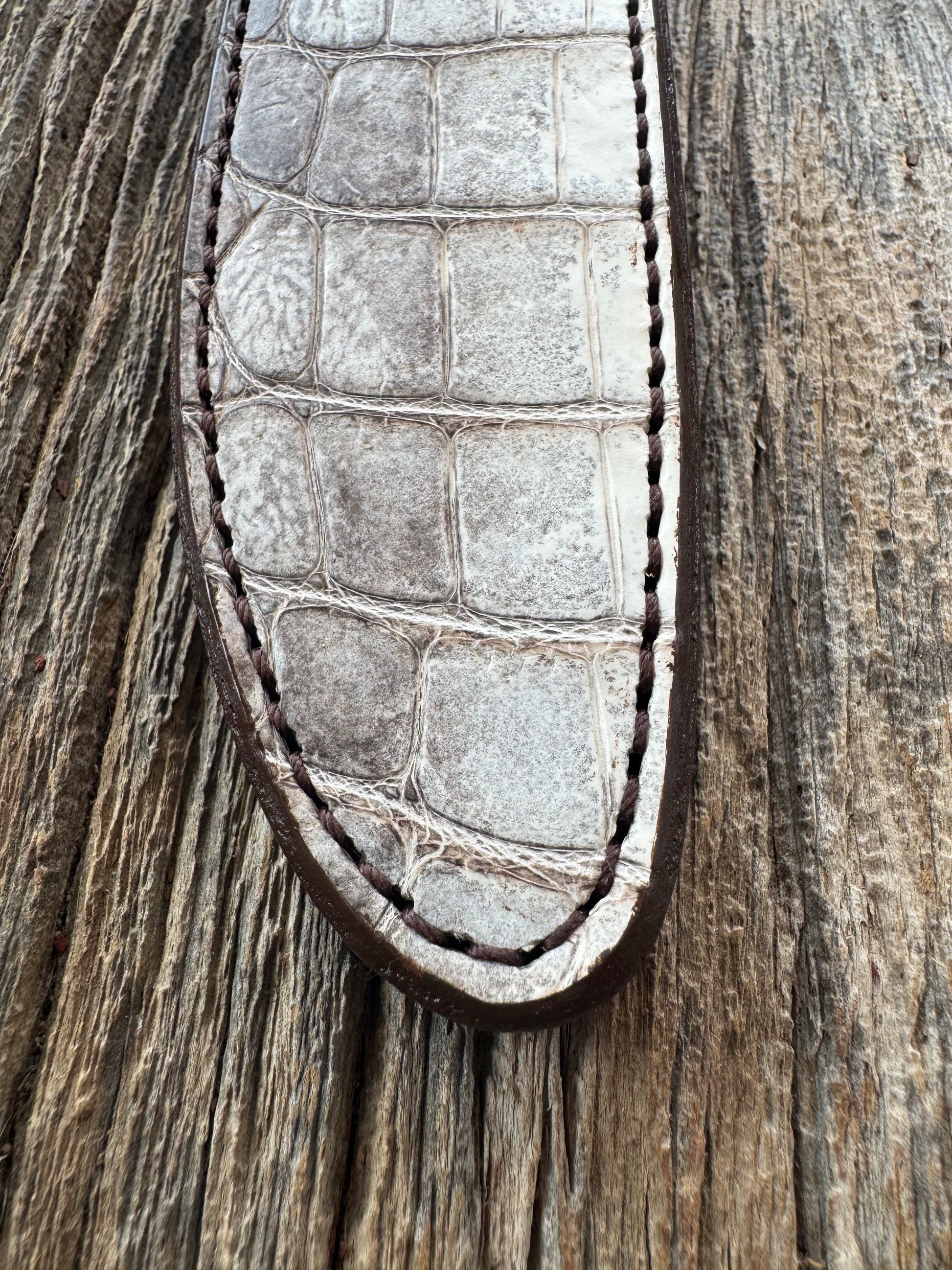 New Randall Model 1-8 or 2-8 Sheath in Exotic white and black Natural Croc with full leather belt loop. Custom Made at Sullivan’s by Gutcher.