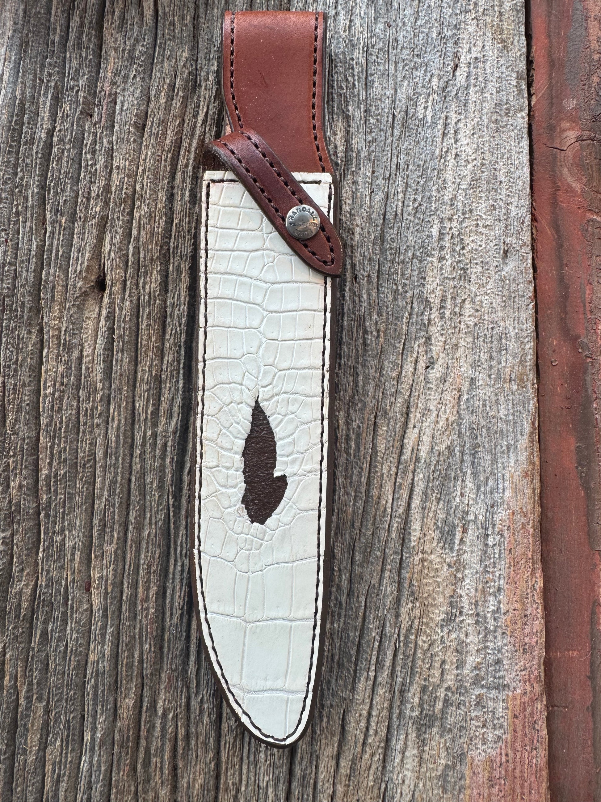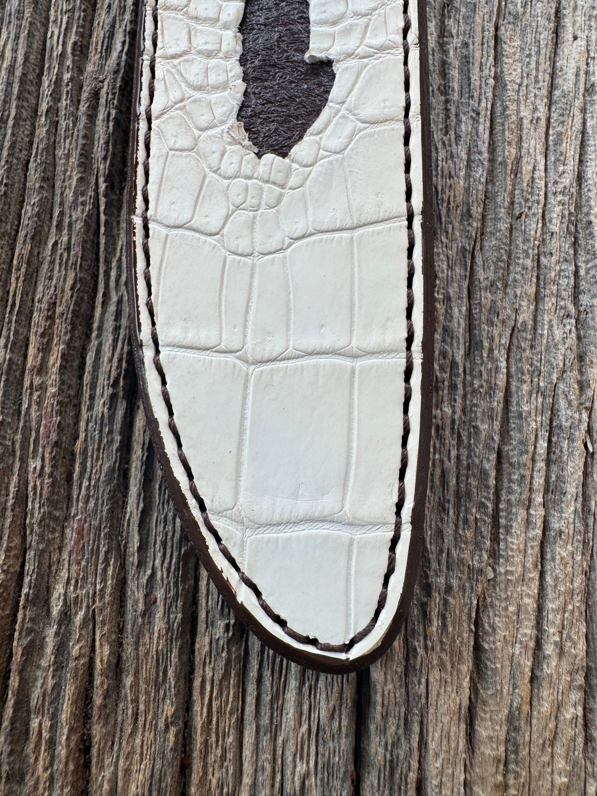 New Randall Model 1-8 or 2-8 Sheath in Exotic white Natural Croc with Anus and full leather belt loop. Custom Made at Sullivan’s by Gutcher with Randall stamp on back and snap.
