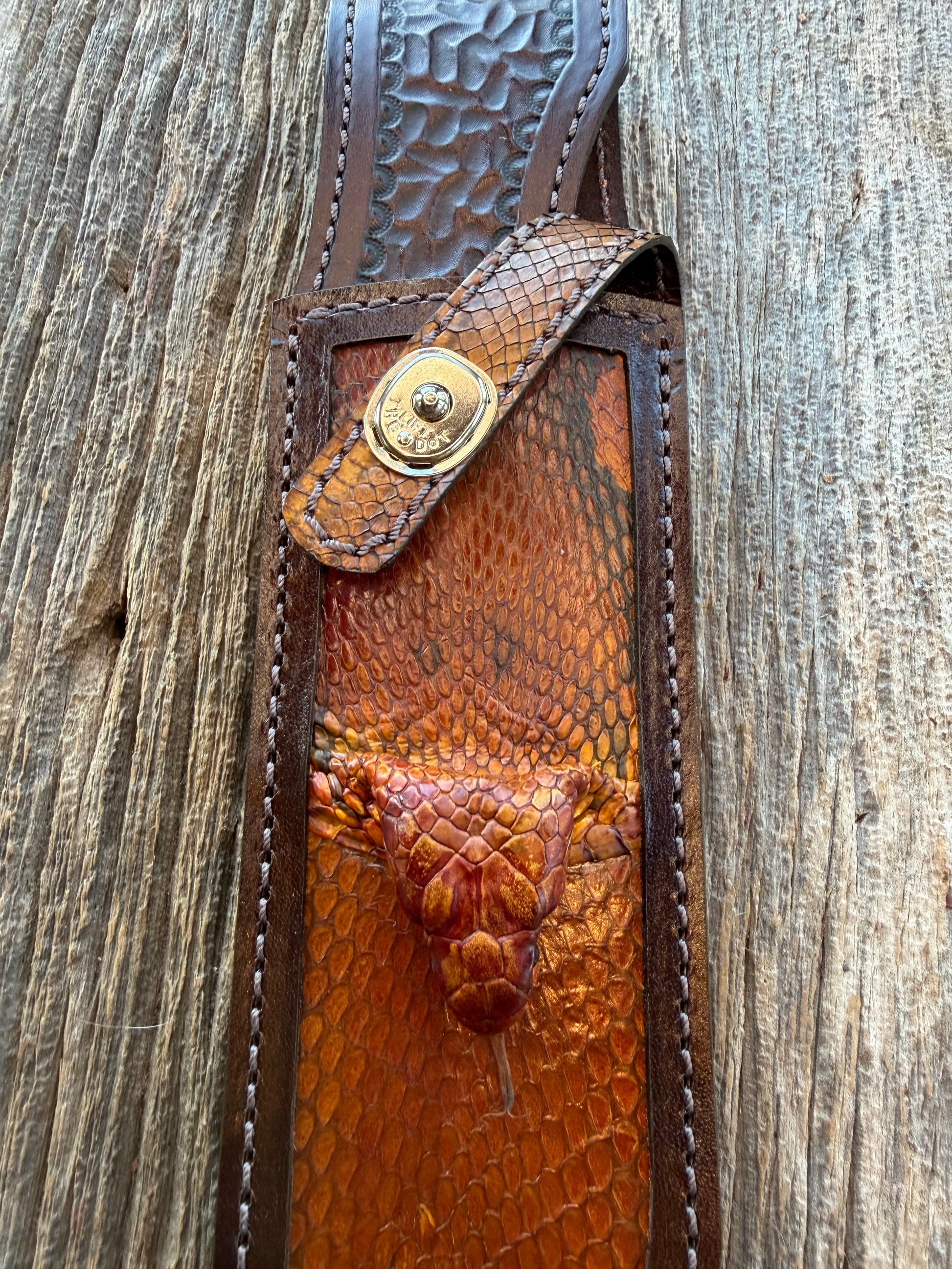 New Randall Model 12-9 Bowie Sheath in Exotic Cobra with actual head by Treeman. Black and Browns … one of only a few 12-9’s I have.