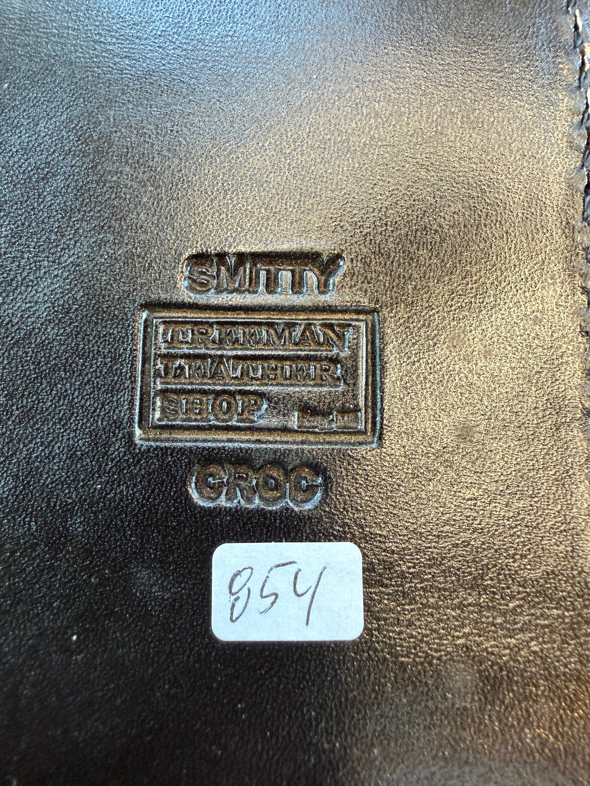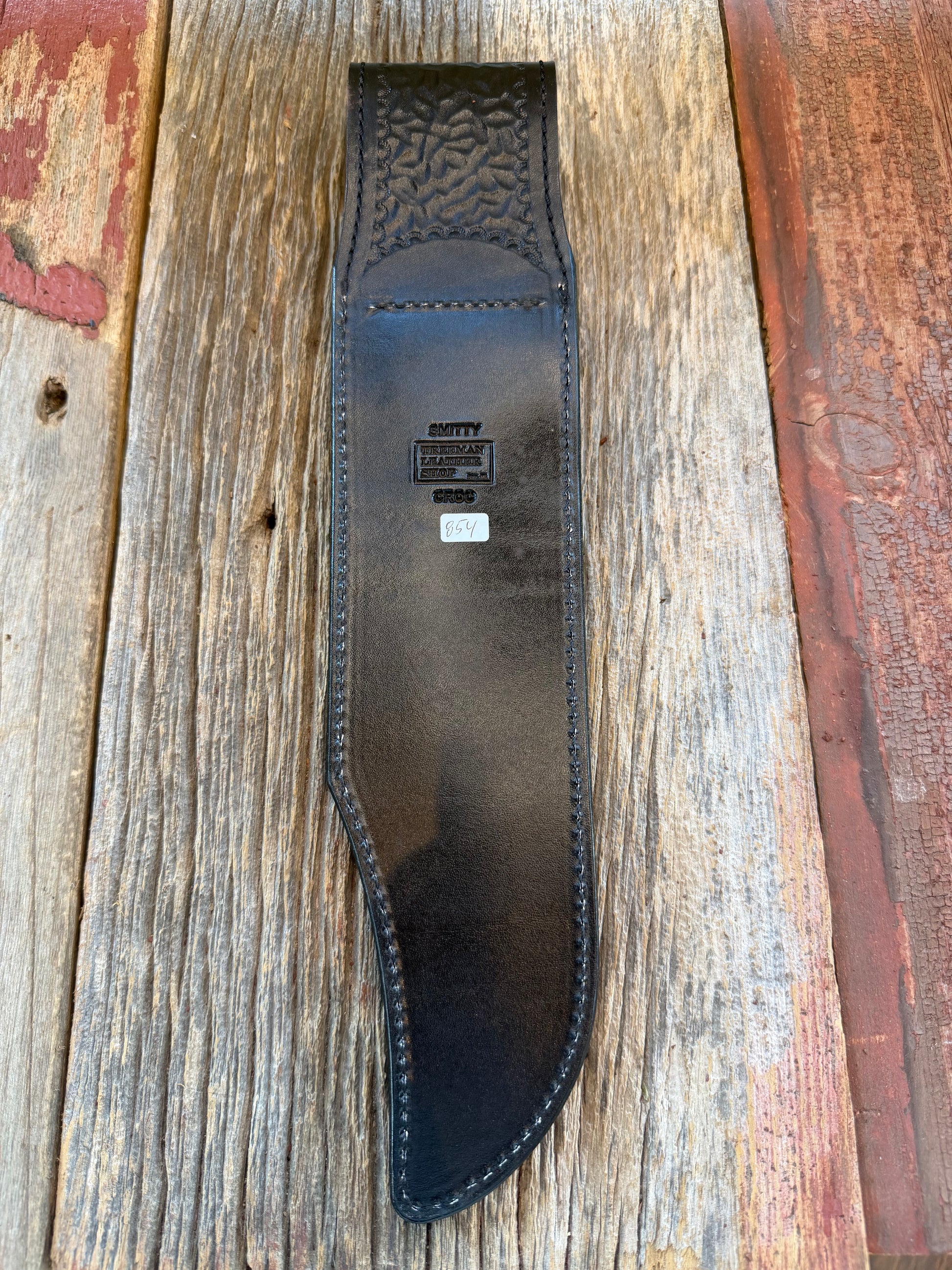 This is a nice Treeman sheath in Black Crocodile for a model Smithsonian. It has a unique texture color and pattern. The latest from Rocco with brass stamping on the back and Treeman logo inside a square providing a clean organized look.