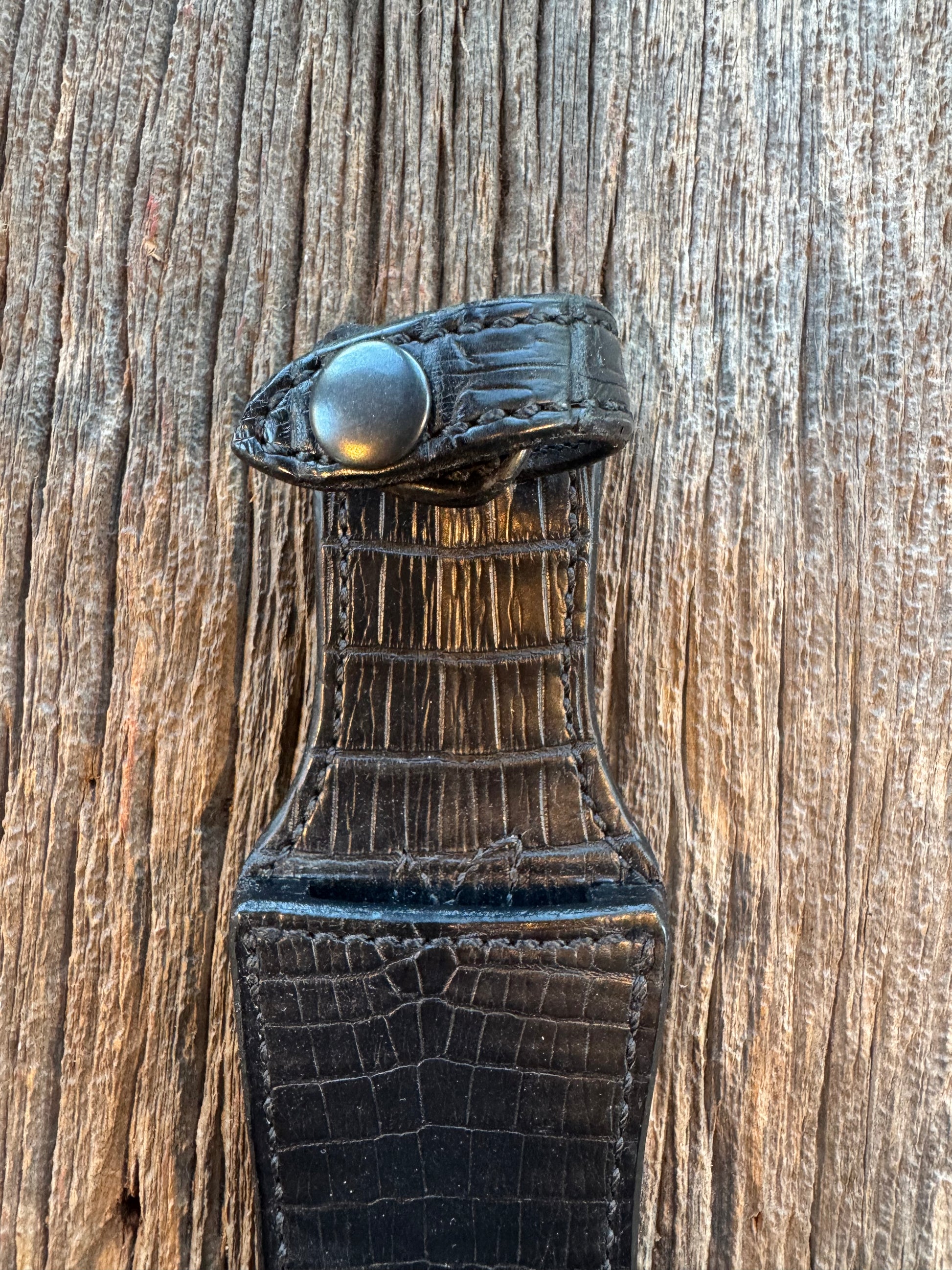 New Randall Model 2-8 Sheath in Exotic Black Natural Croc with full belt loop, back and front and loop in Black Croc( very rare) Custom Made at Sullivan’s by Gutcher.