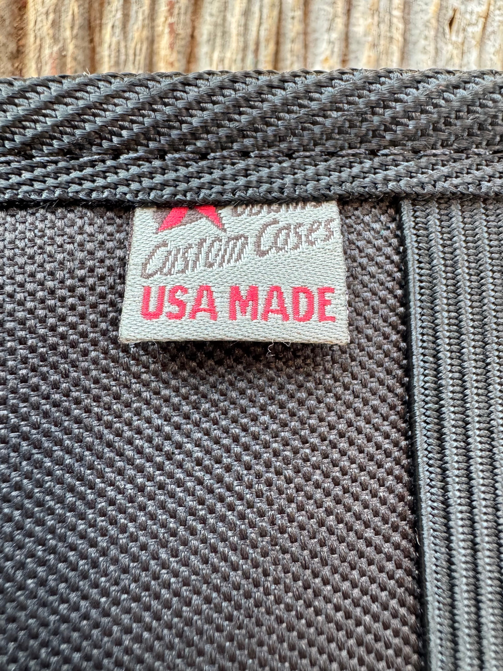 Robbins Custom case with a Cool silk thread Model sewn into the case. Elastic Straps on the back to hold your sheath in place and a soft black velvet plush interior. 13 interior inches for your knife on plush fleece.