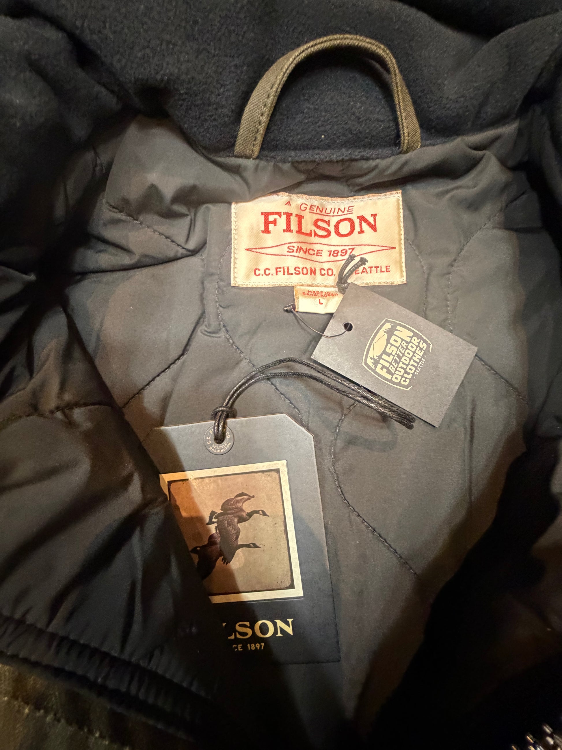 NWT Filson TIN CLOTH PRIMALOFT® JACKET in Otter Green in a size Large NWT