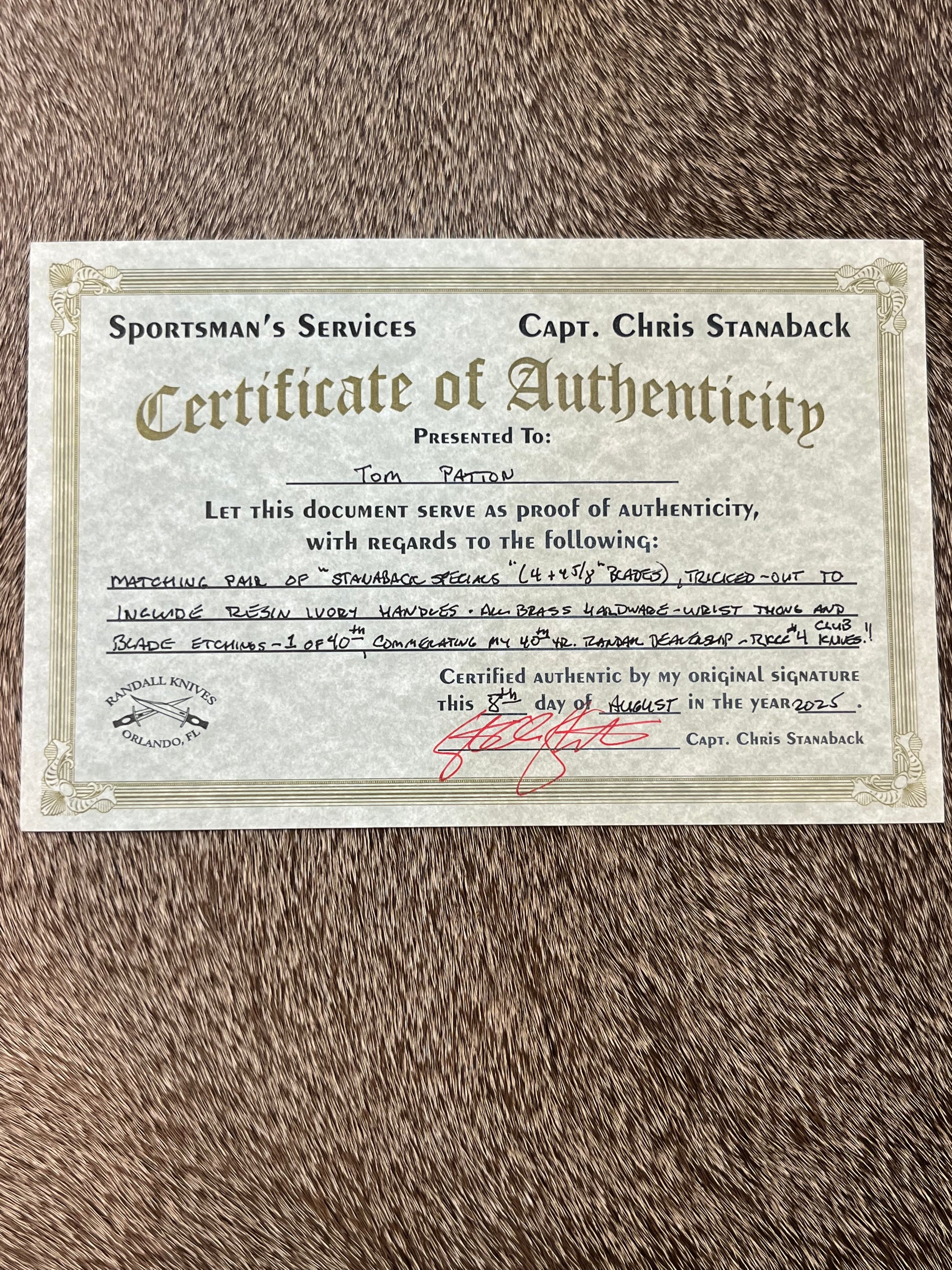 Pair of Stanaback Specials RKCC Limited 1 of 40th, these are Commemorating Captain Chris Stanaback as a Randall Dealer for 40 years.
