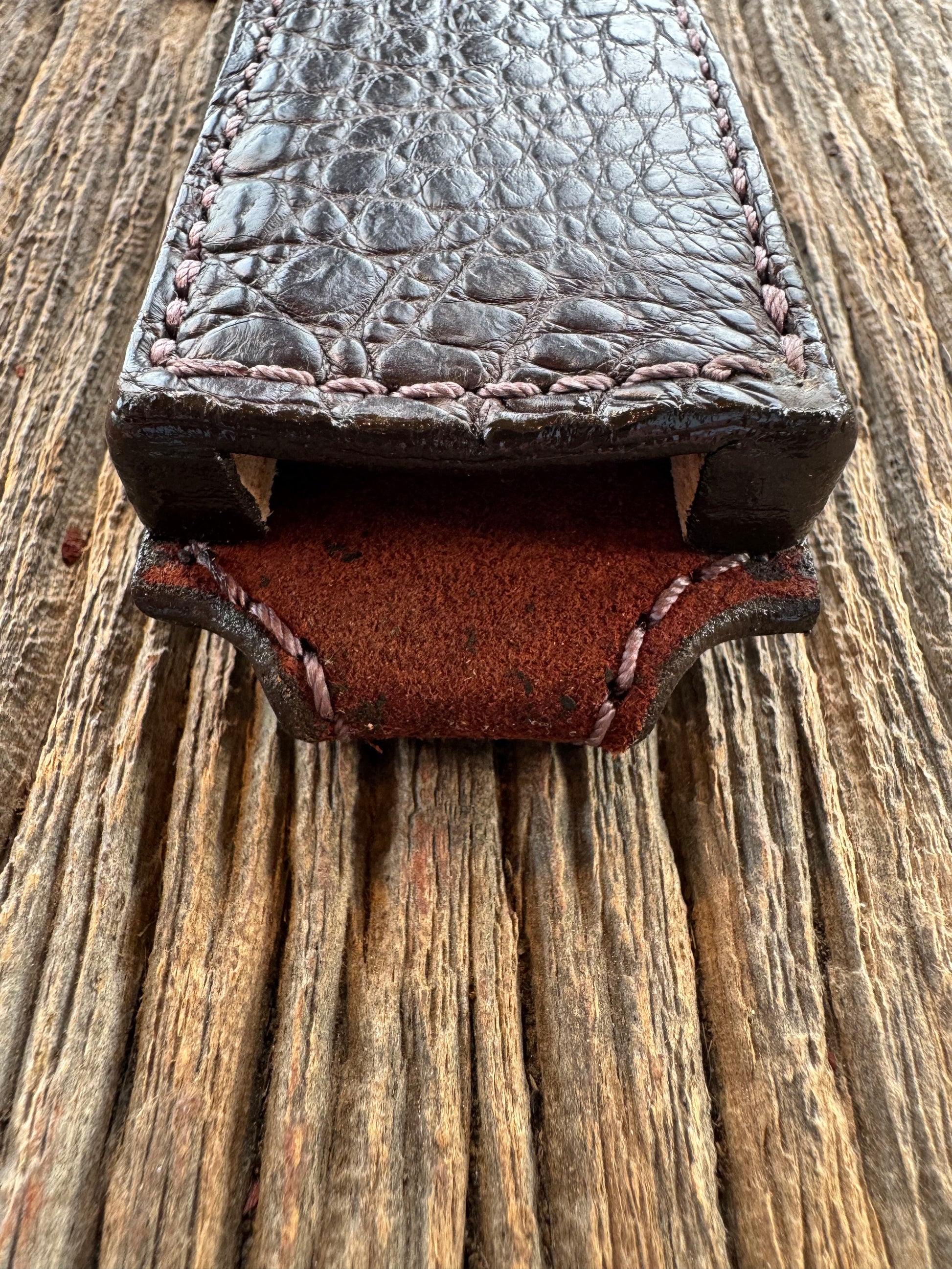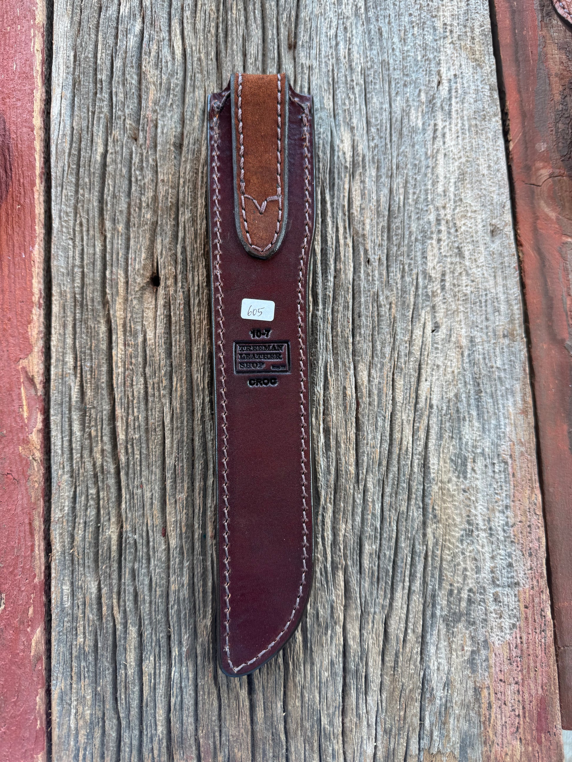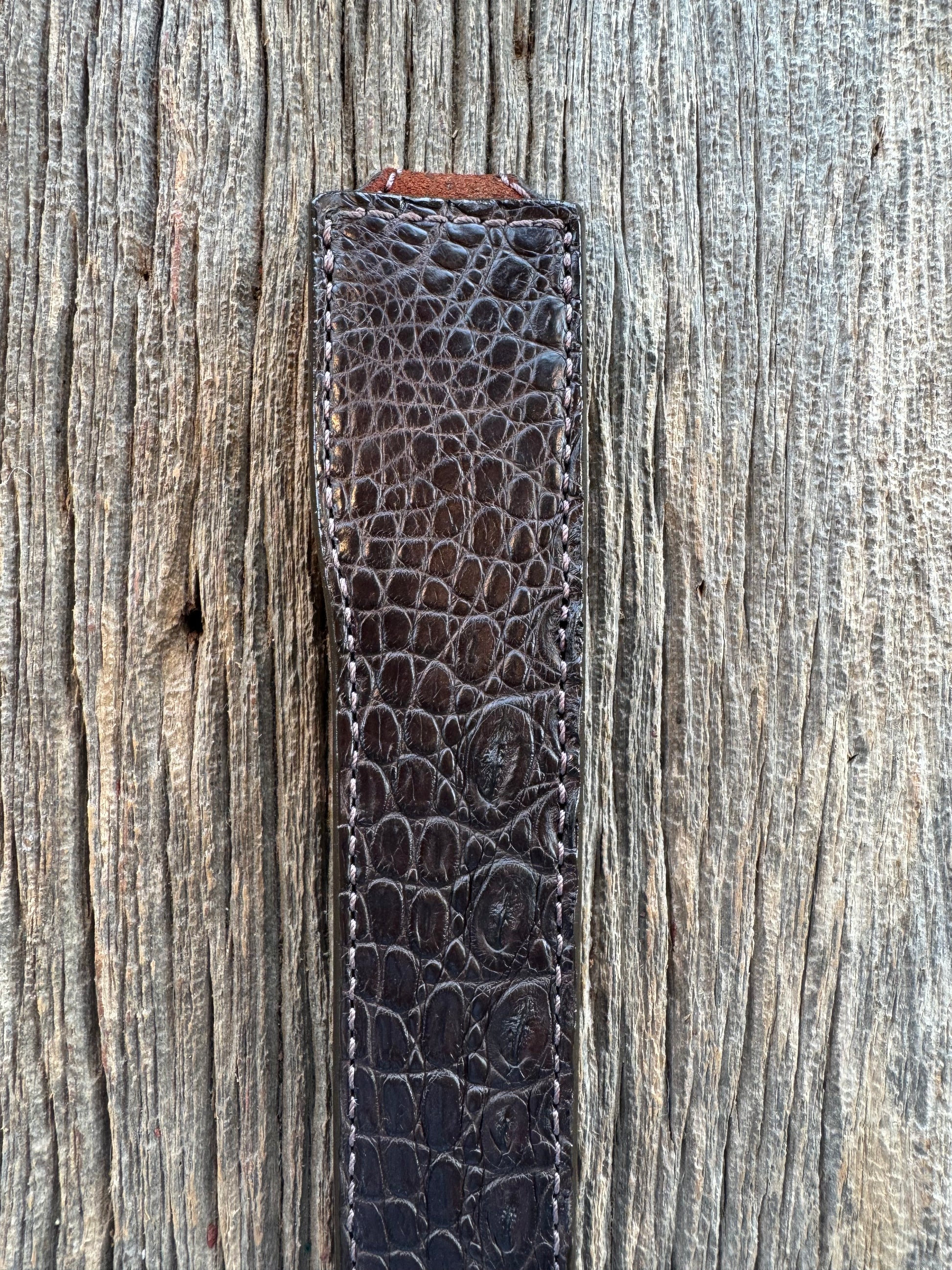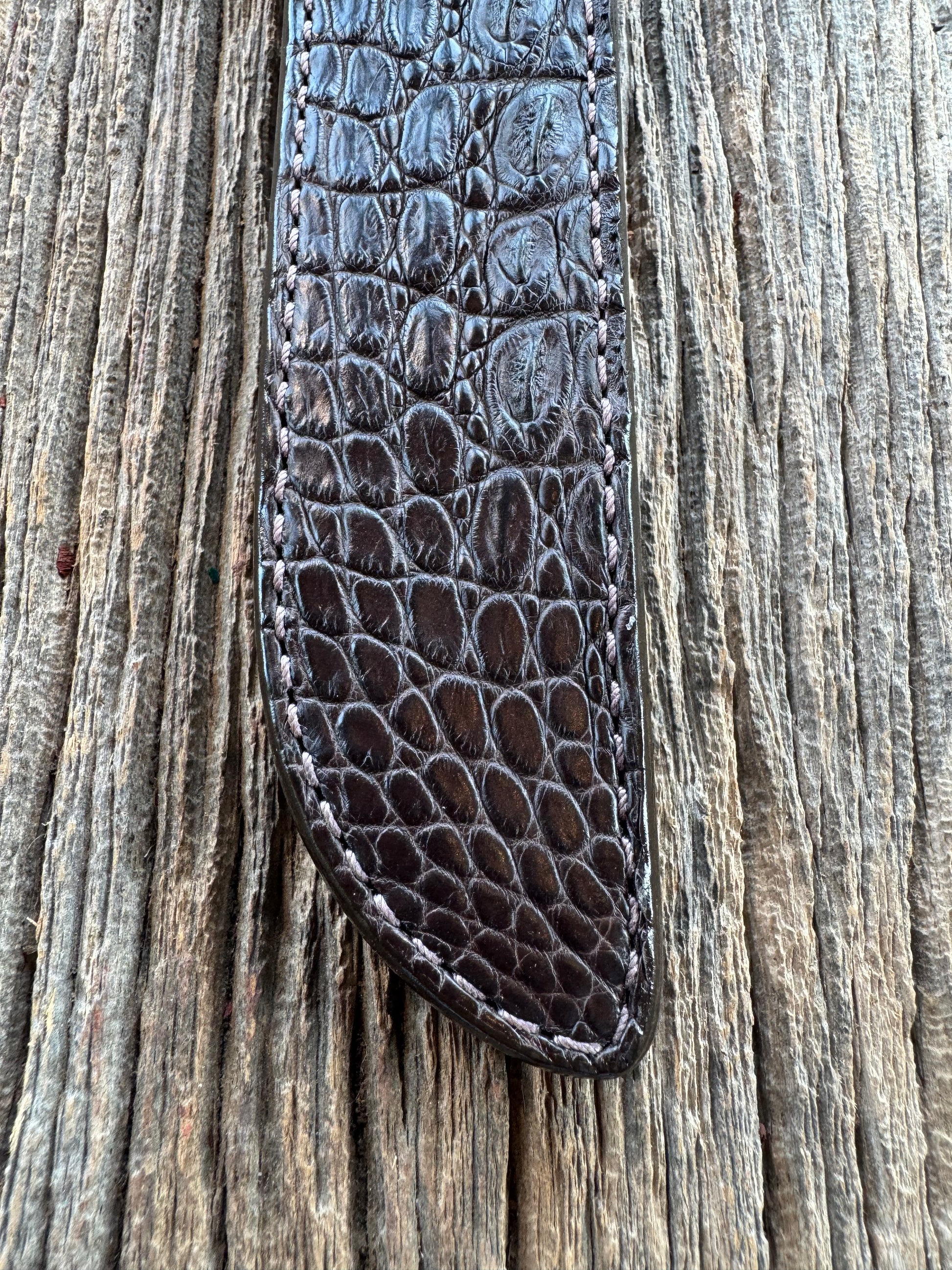 Randall Model 10-7 Fisherman Exotic Sheath in Dark Brown Hornback Crocodile by Treeman.