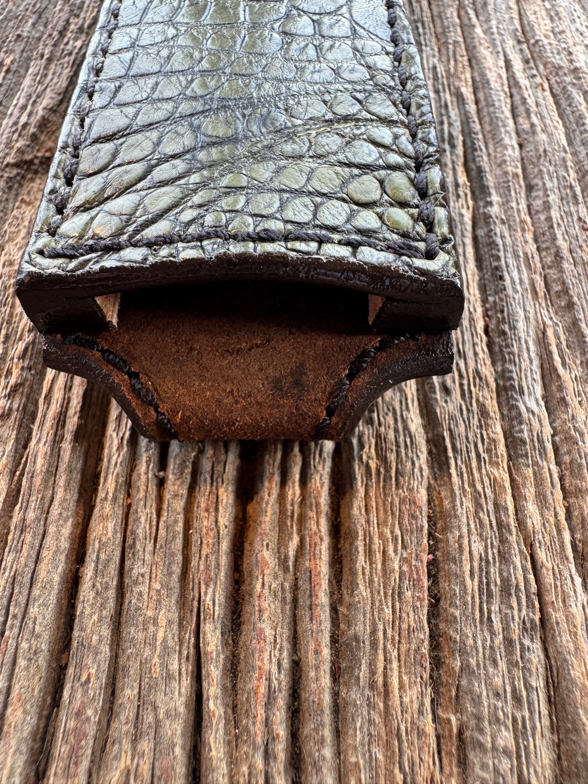 Randall Model 10-7 Fisherman Exotic Sheath in Army Green Crocodile by Treeman.