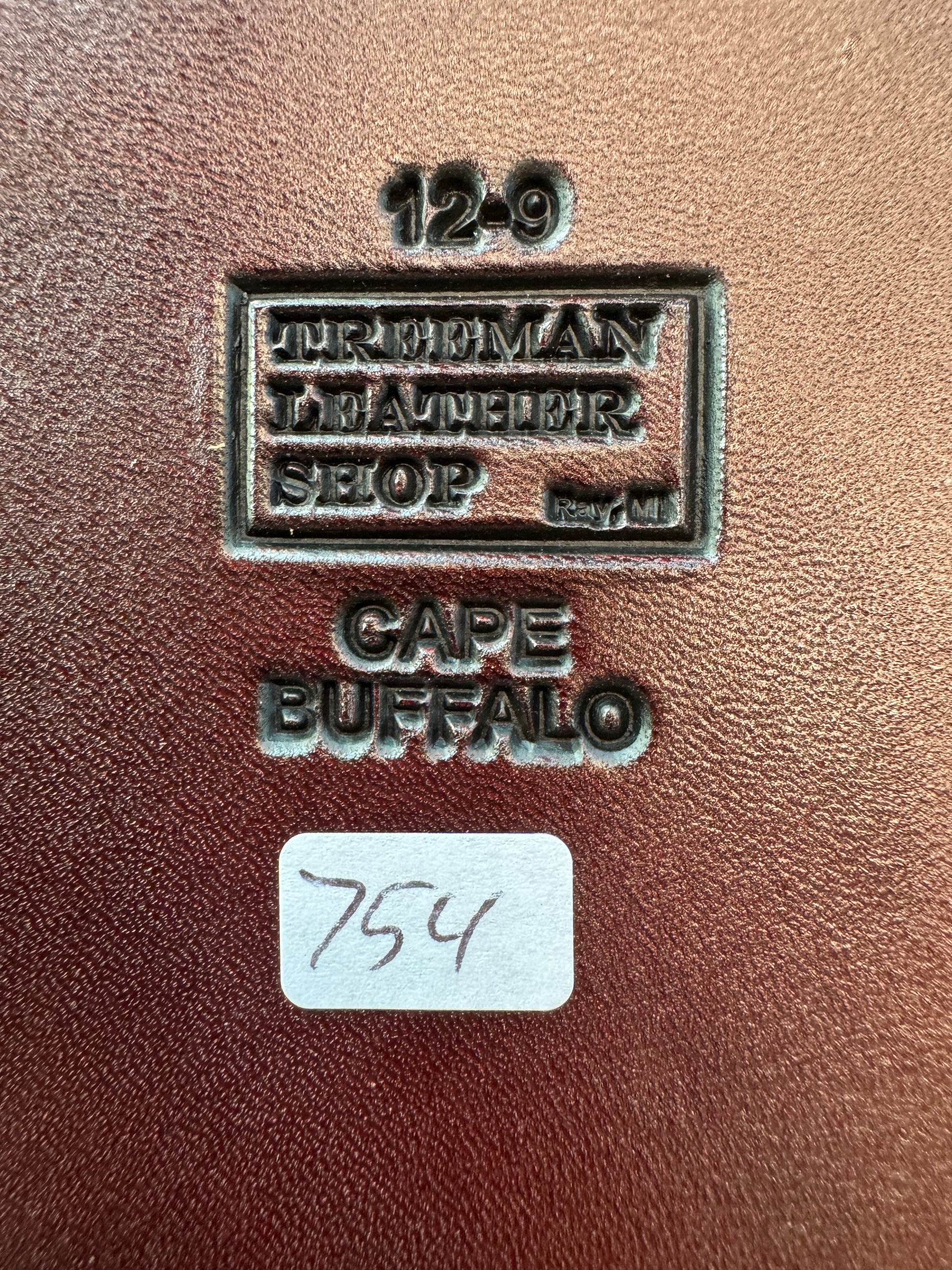 This is a very nice Treeman Cape Buffalo sheath in a dark Brown leather. It has a unique texture color and pattern. There are natural lines and markings on the leather from battle scars, making each sheath unique. The latest from Rocco with brass stamping on the back and Treeman logo inside a square providing a clean organized look. This Buffalo was taken by me in July of 2023 in Tanzania Africa and tanned in the United States.