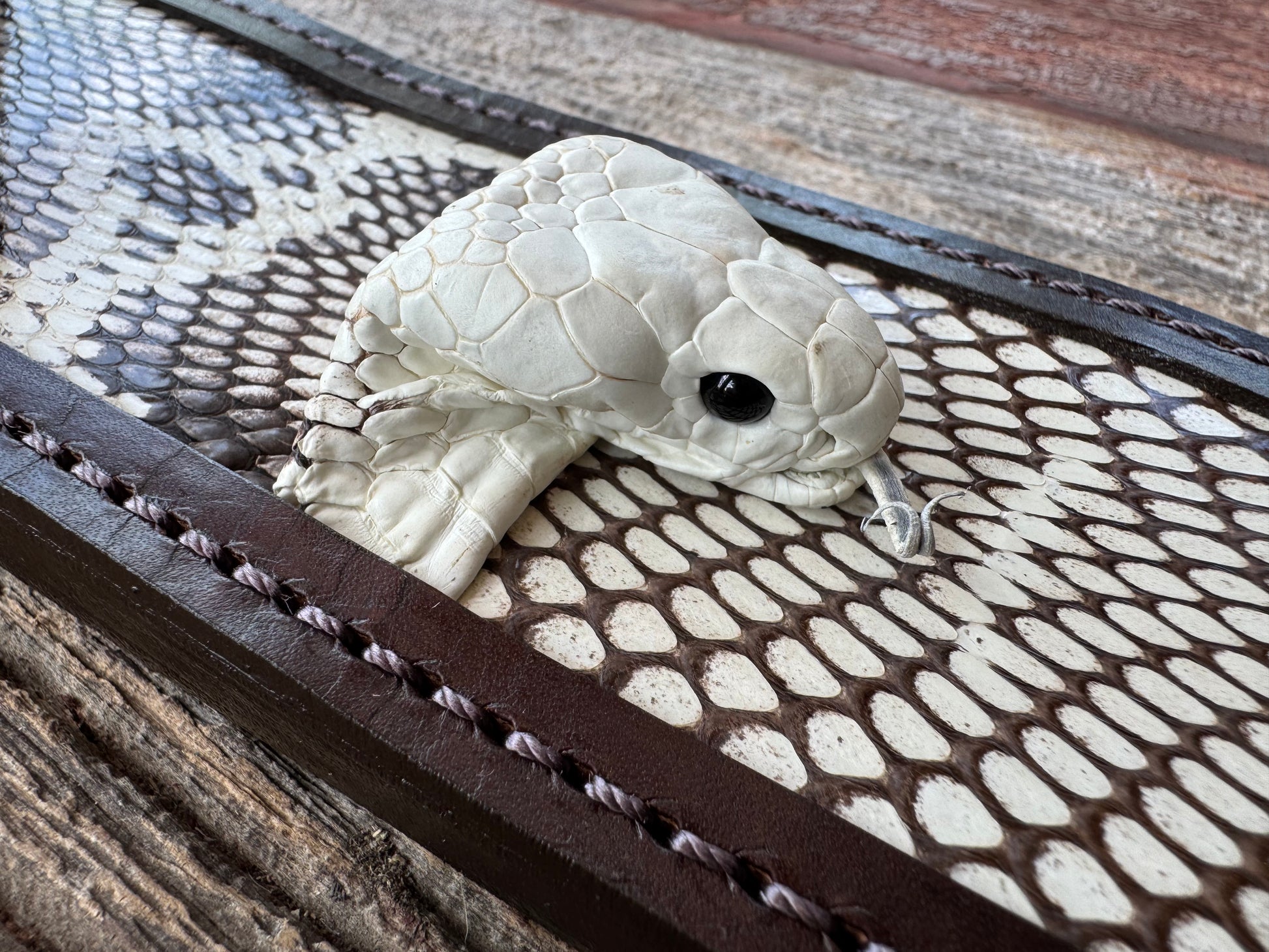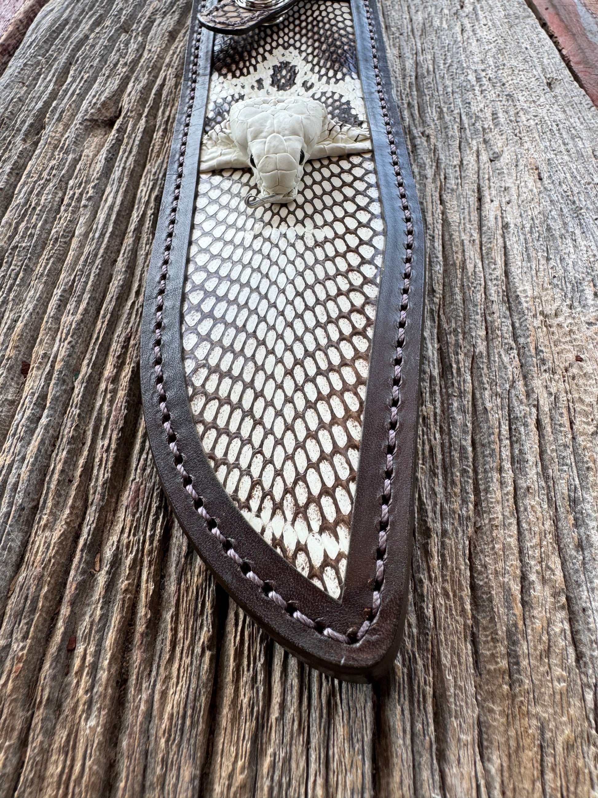 Randall Model 12-9 Bowie Sheath in Exotic Cobra with actual head by Treeman. White and Brown … my only 12-9.