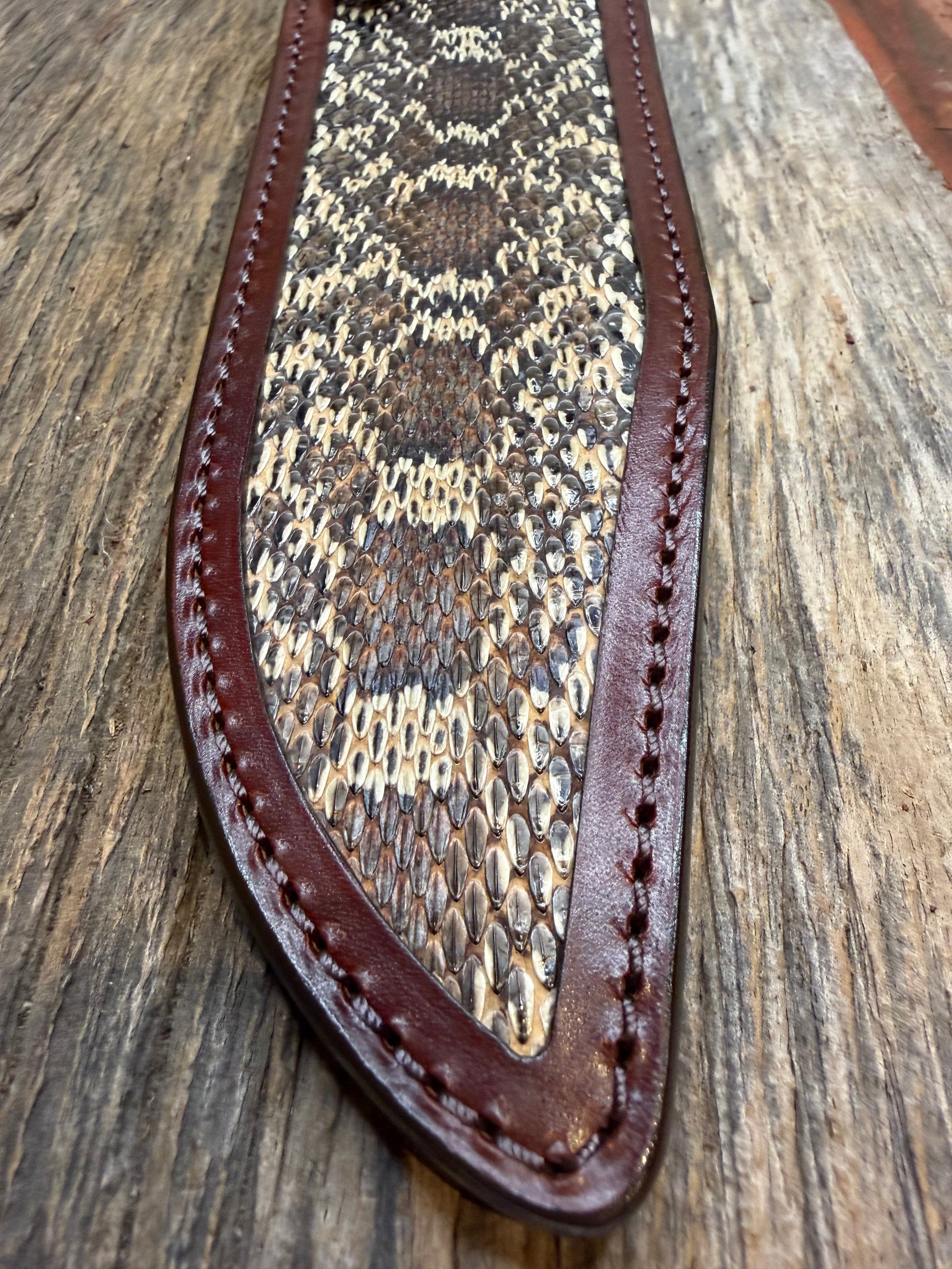 Randall Model 12-9 Sheath in Exotic West Texas Yellow Gopher Snake from Treeman Sheaths. Dark colors from the center of the skin, phenomenal.