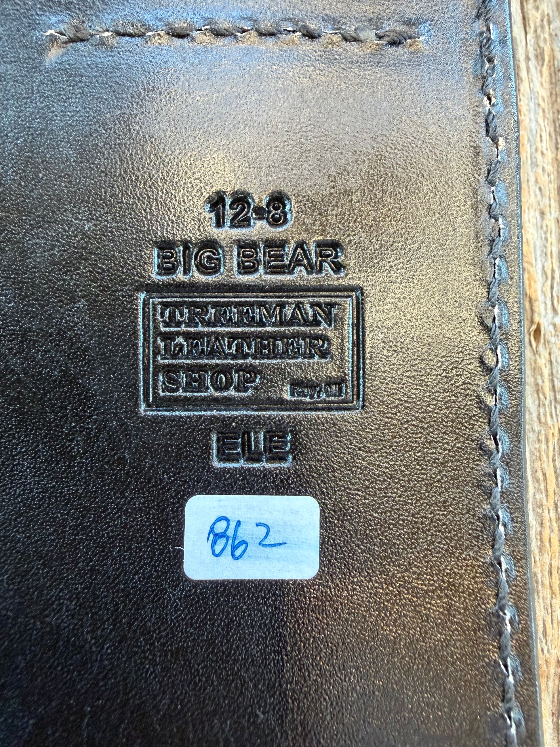 A small batch of sheaths from African Elephant ear. They have a very distinctive texture and appearance. This one fits a Randall model 12-8. Very clean sheath with a black canteen snap and black threading.
