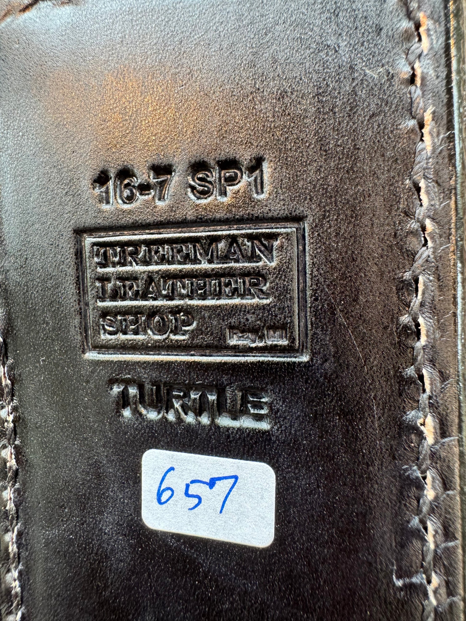Randall Model 16-7 SP1 Sheath in Exotic Black Snapping Turtle by Treeman. Spiked Dragon tail portion of the turtle.