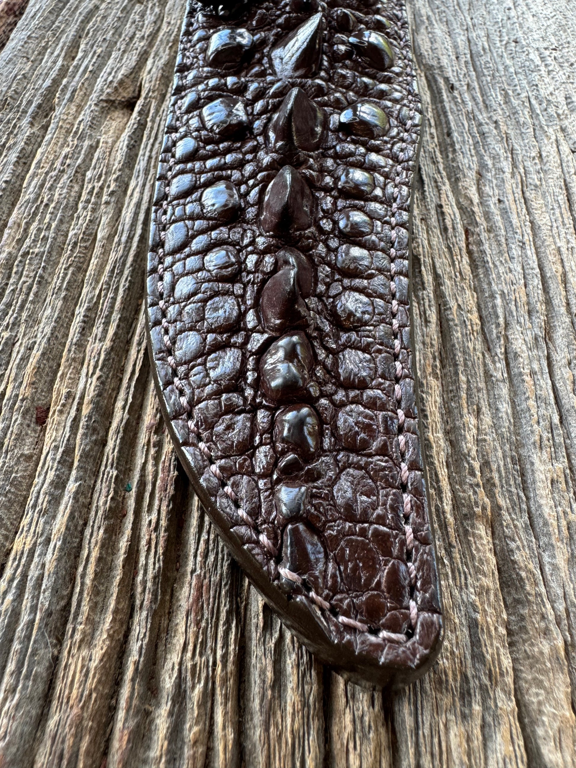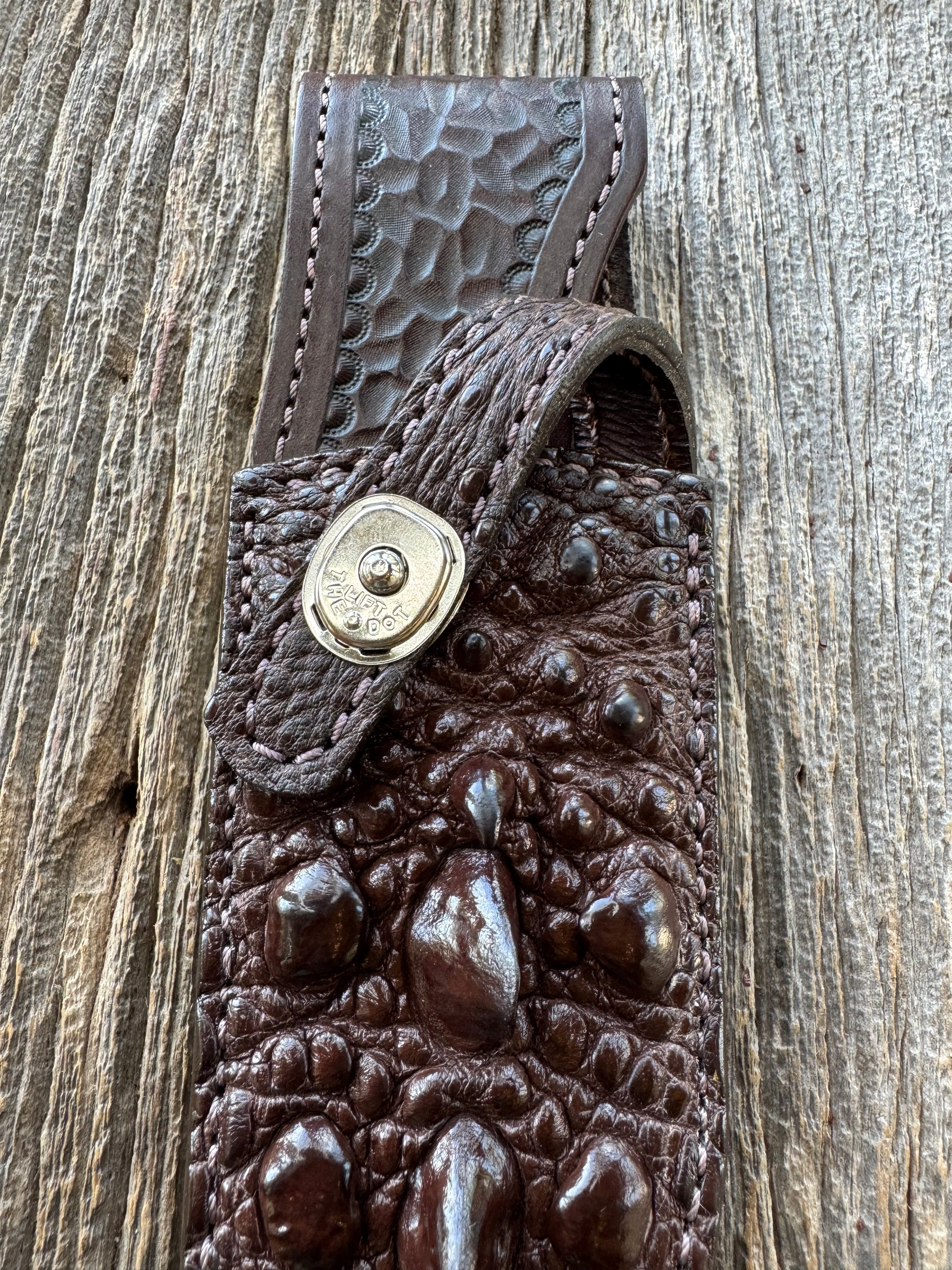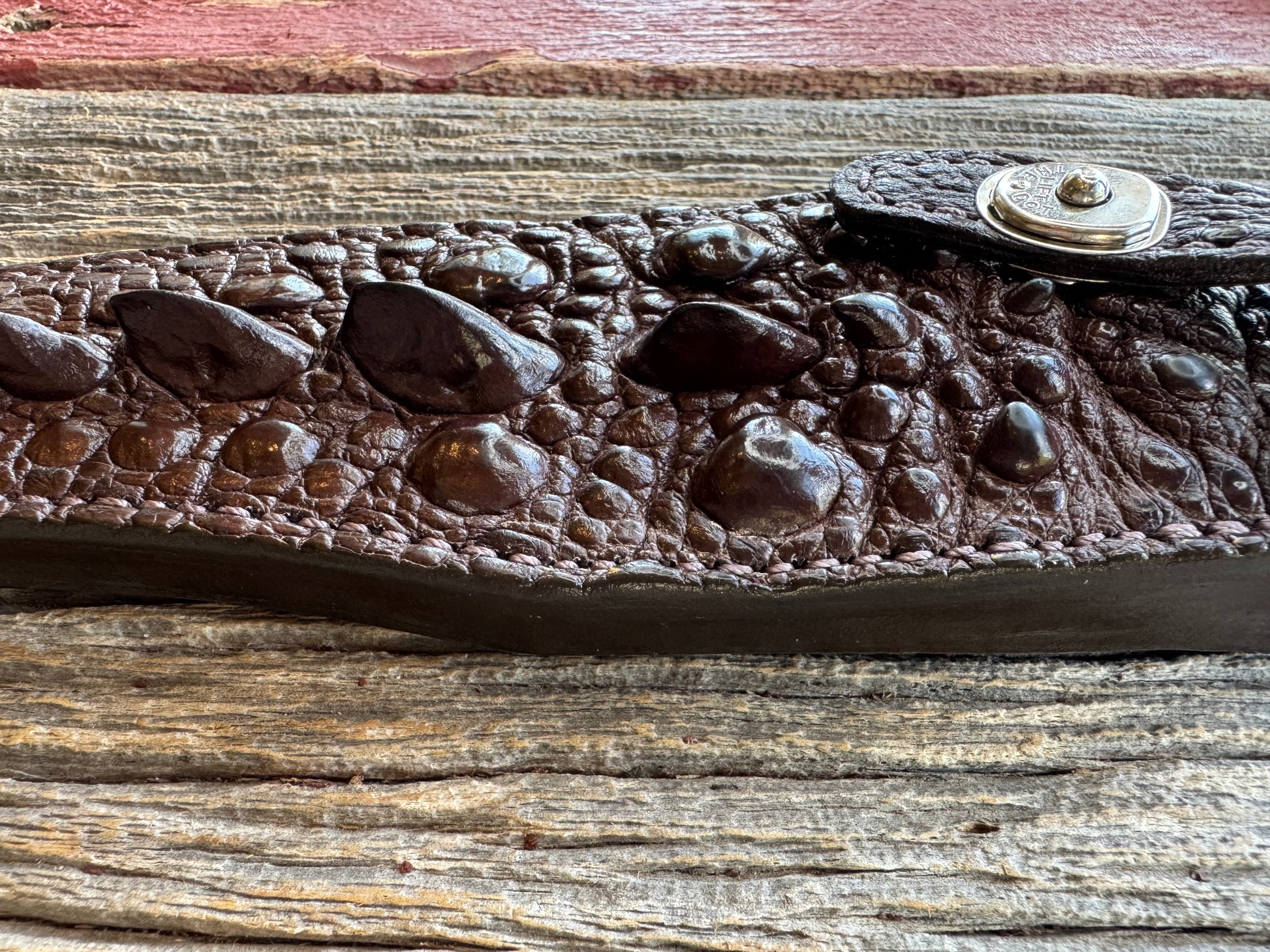 Randall Model 12-8 “Big Bear” Sheath in Exotic Dark Brown Snapping Turtle by Treeman. Spiked Dragon tail portion of the turtle.