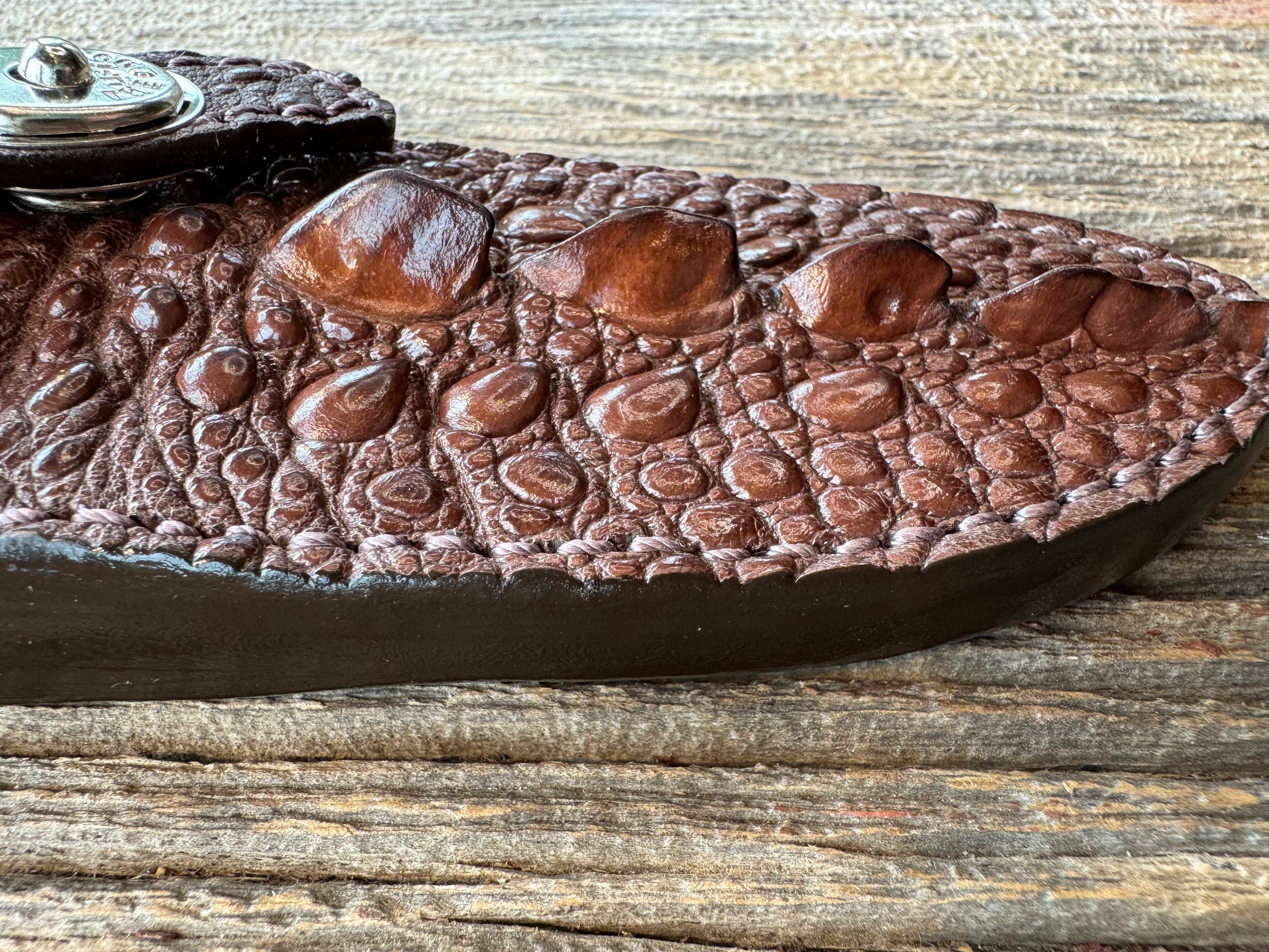 Randall Model 11-5 Sheath in Exotic Brown Snapping Turtle by Treeman. Spiked Dragon tail portion of the turtle.