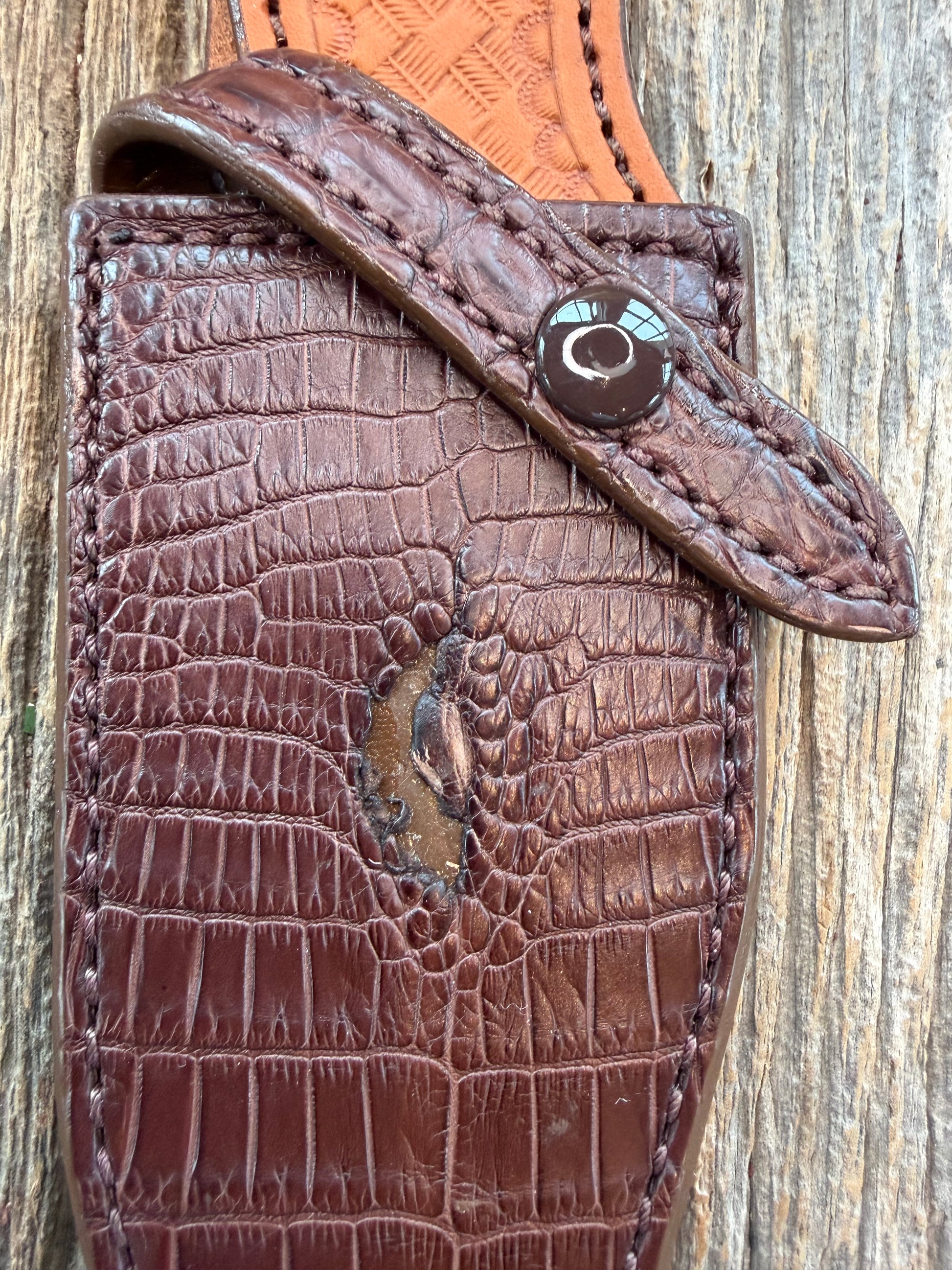 Randall Model 19-5 Exotic Brown Crocodile Anus Sheath from Sullivans by Gutcher.