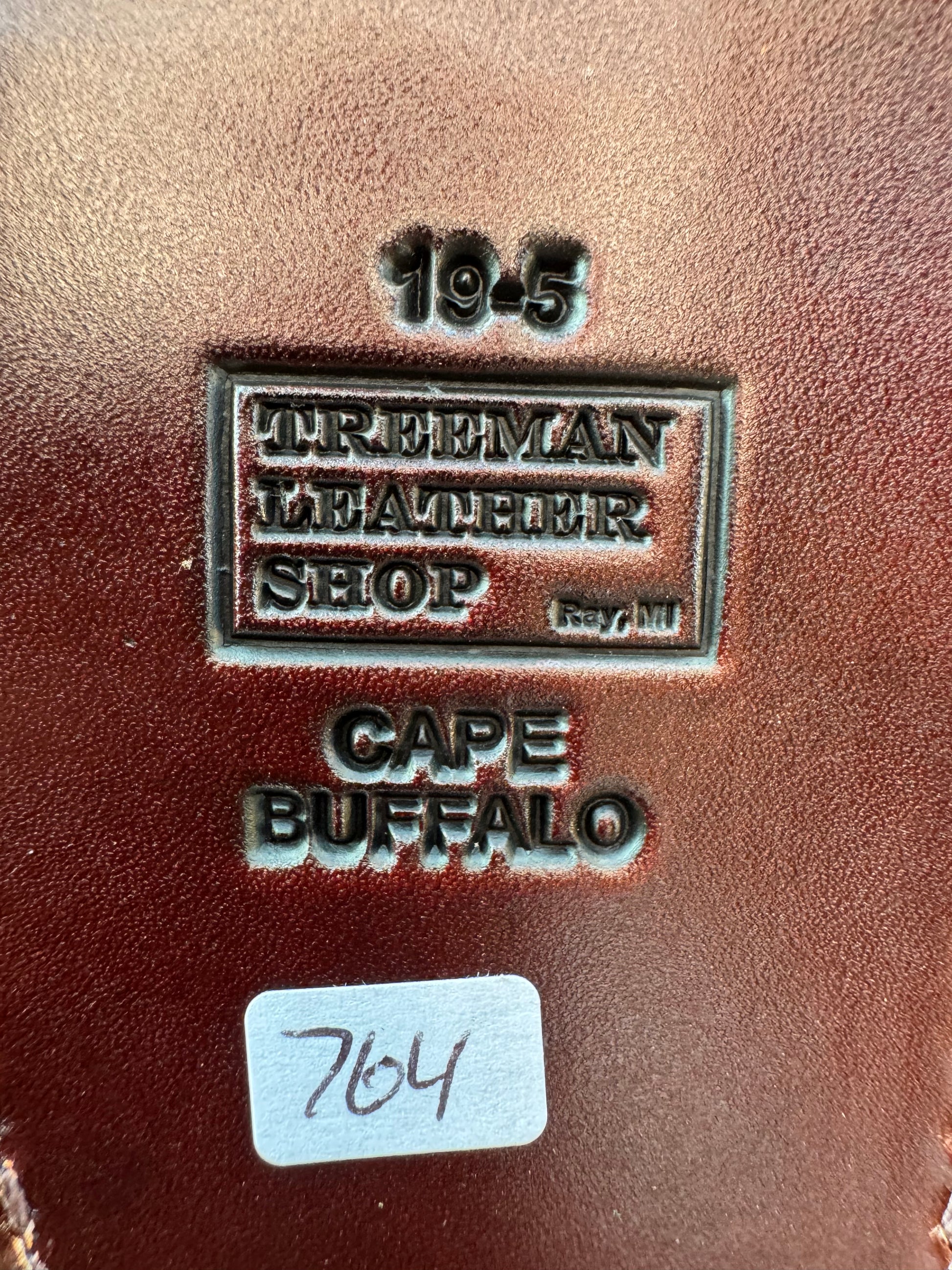 Randall Model 19-5 Exotic Cape Buffalo Sheath in dark brown leather from Treeman.