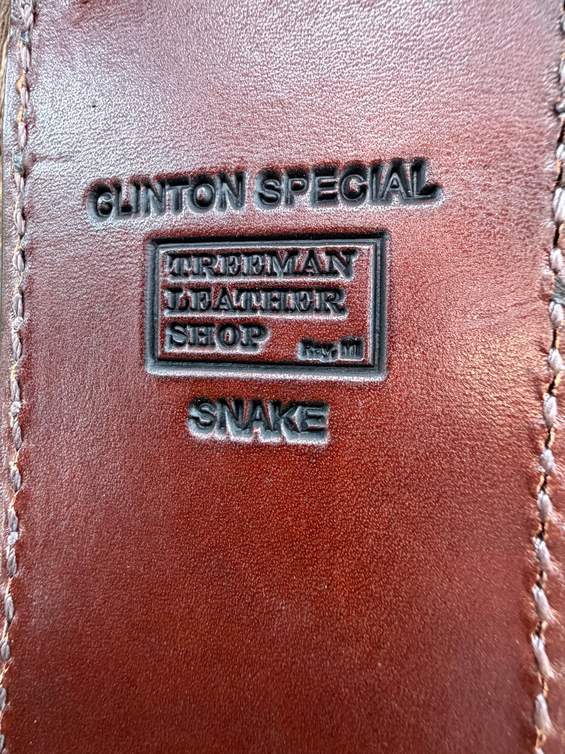 Randall Model Clinton Special Sheath in Exotic West Texas Yellow Gopher Snake from Treeman Sheaths. Incredible color on this one!!