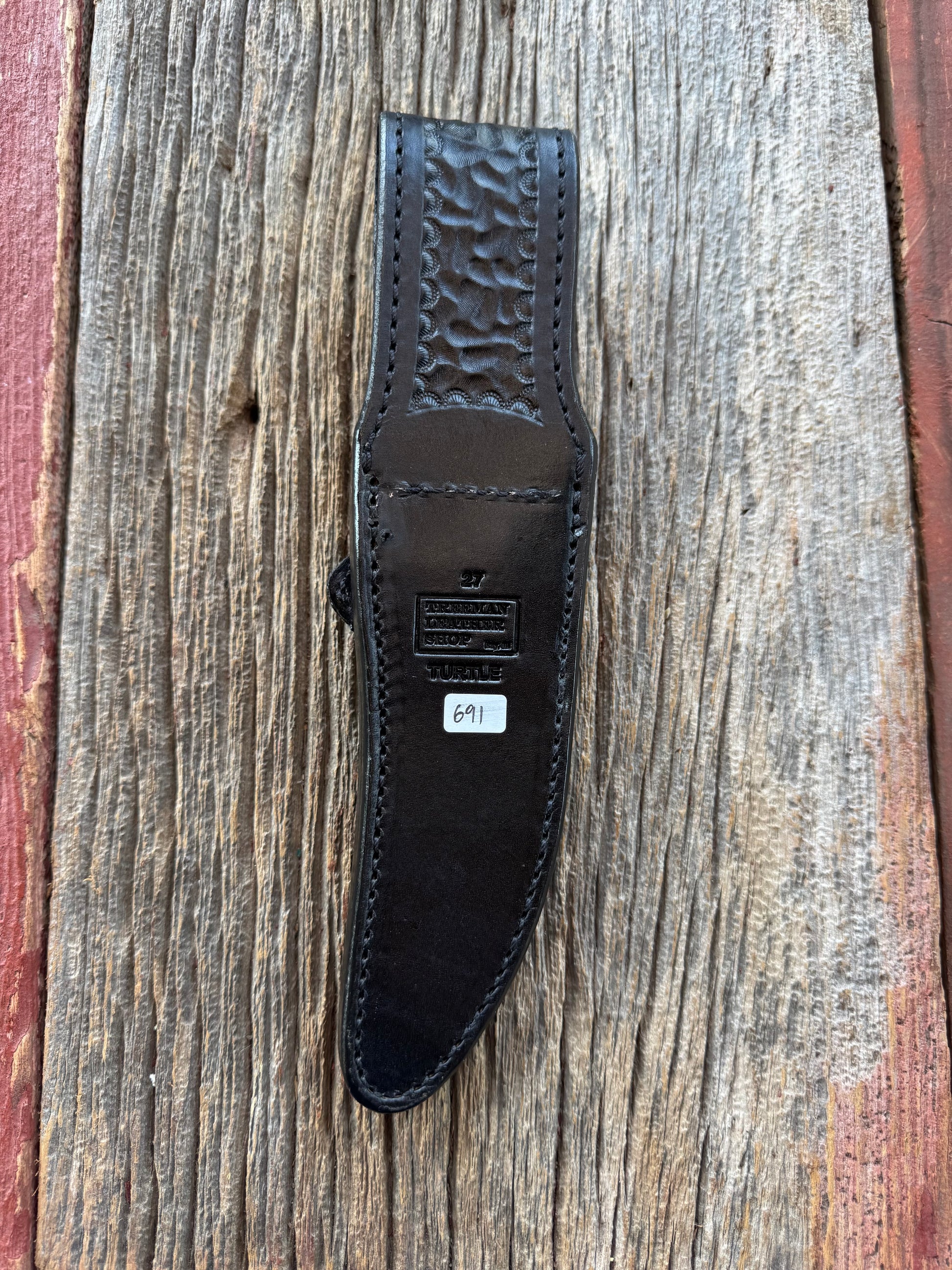 This is a nice Treeman sheath in Black Snapping Turtle for a model 27. It has a unique texture color and pattern. The latest from Rocco with brass stamping on the back and Treeman logo inside a square providing a clean organized look.