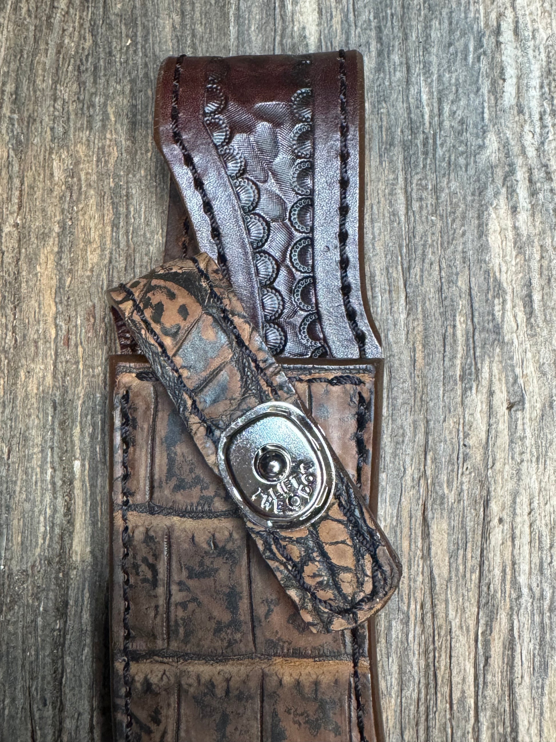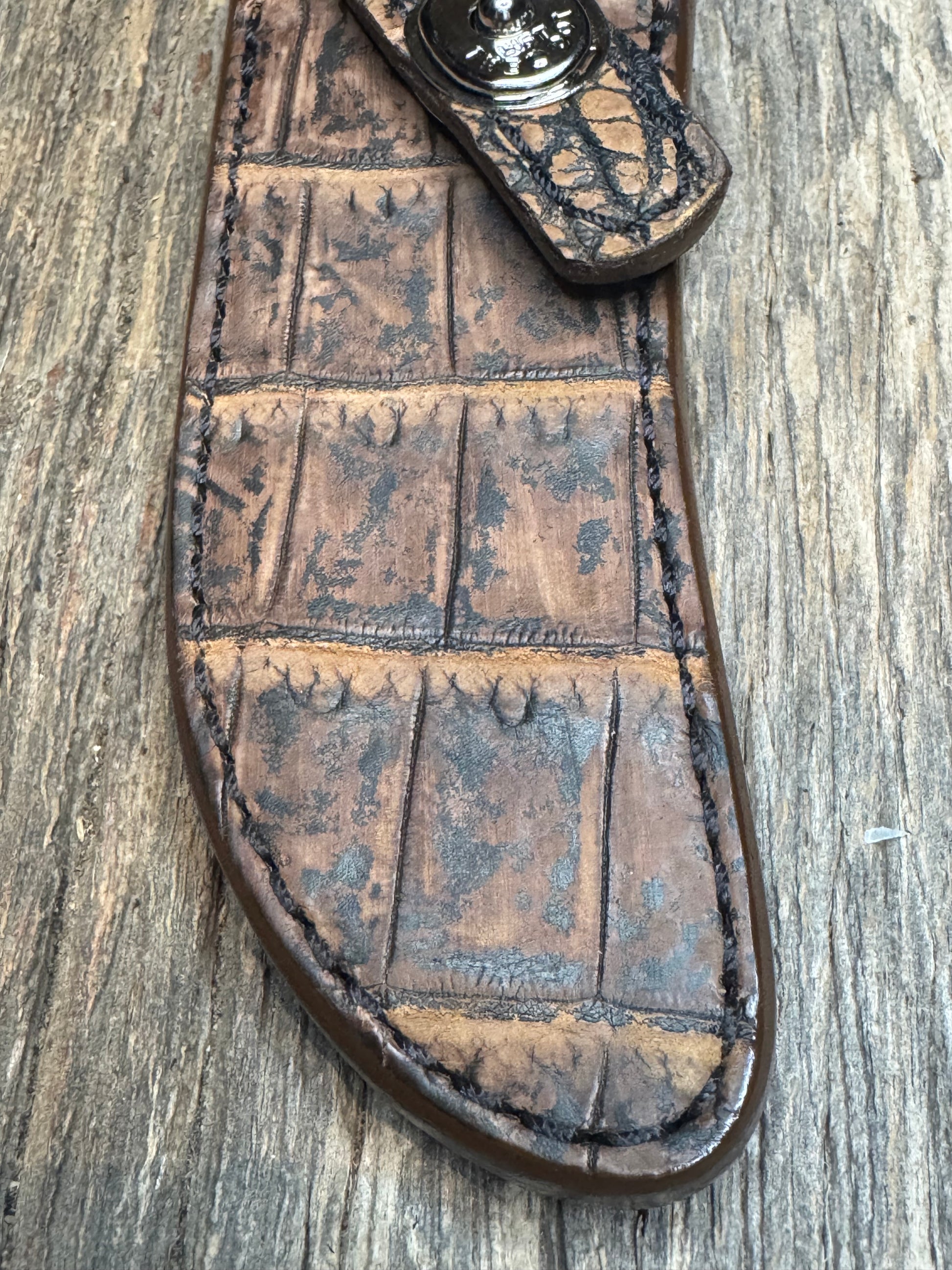 Randall Model 20 Sheath in Exotic Brown Sueded Crocodile from Treeman.