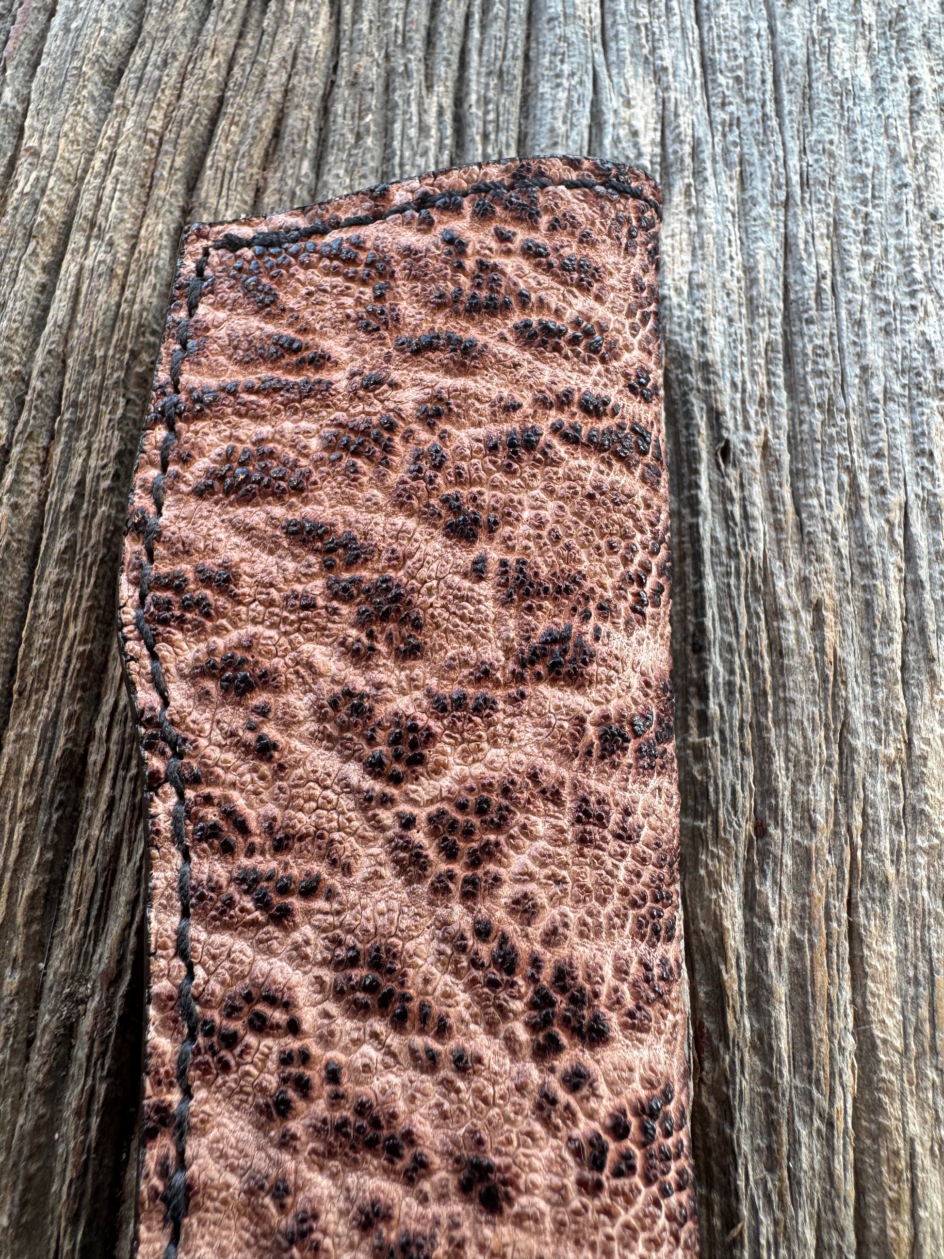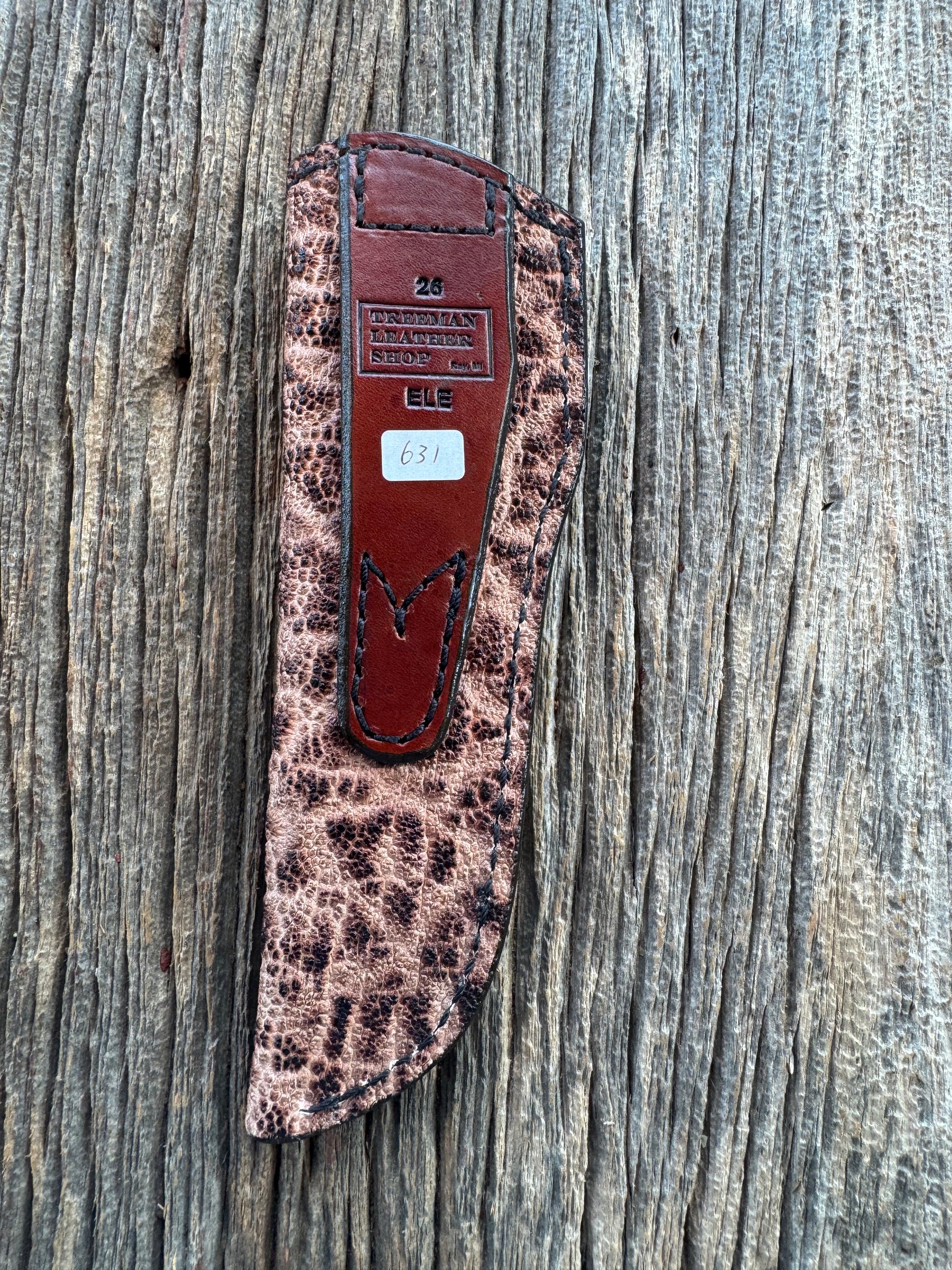 This is a nice Treeman sheath in Elephant for a model 26. It has a unique texture color and pattern. The latest from Rocco with brass stamping on the back and Treeman logo inside a square providing a clean organized look.