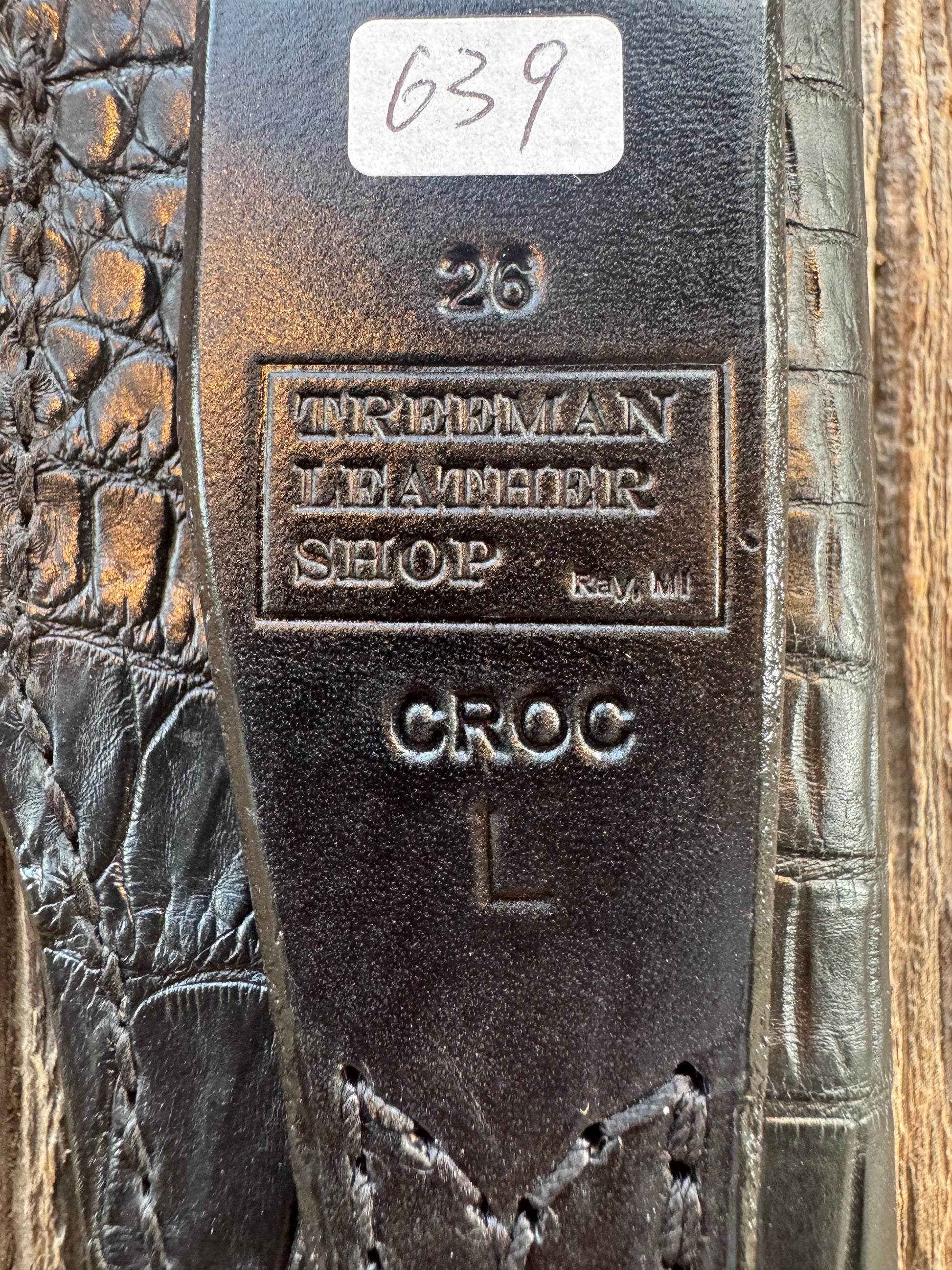This is a nice Treeman sheath in Crocodile for a model 26. It has a unique texture color and pattern. The latest from Rocco with brass stamping on the back and Treeman logo inside a square providing a clean organized look.